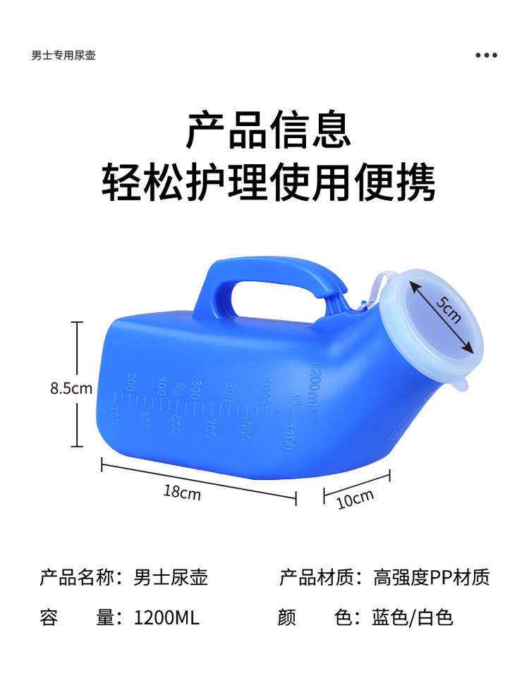 Urinal pria, panci malam kapasitas besar portabel tebal 2000ml untuk orang tua dengan tutup tempat tidur urin dewasa