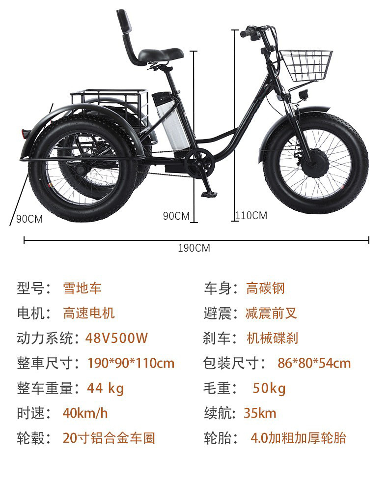 Sepeda roda tiga listrik bertenaga lemak 20 inci baterai lithium salju tiga roda baterai sepeda pabrik mobil