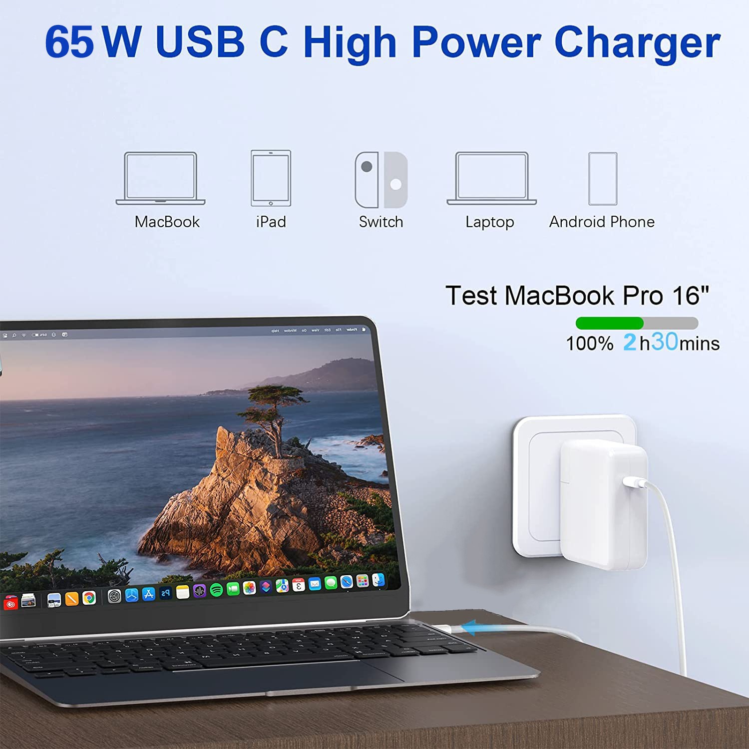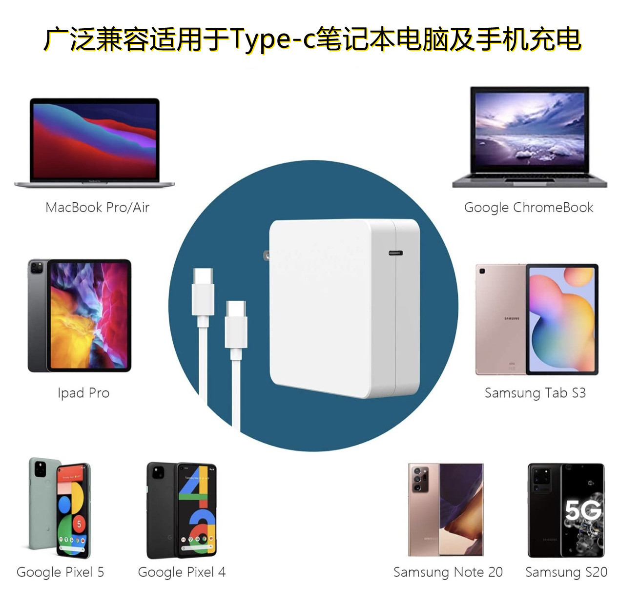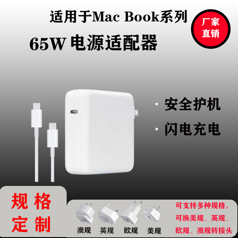适用苹果Mac book笔记本type-c华为充电器usb-c手机65W电源适配器