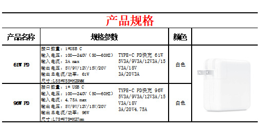 67W笔记本电源适配器Typec适用苹果笔记本电脑Mac Book充电头