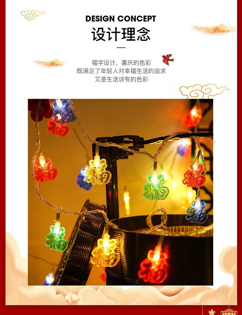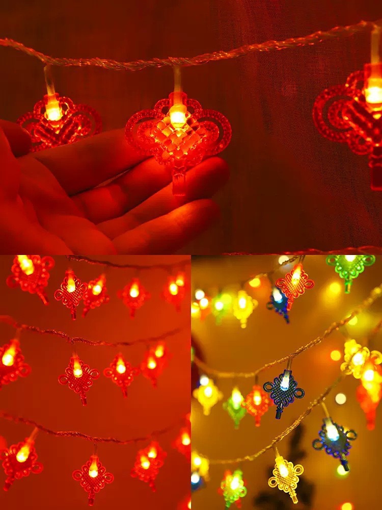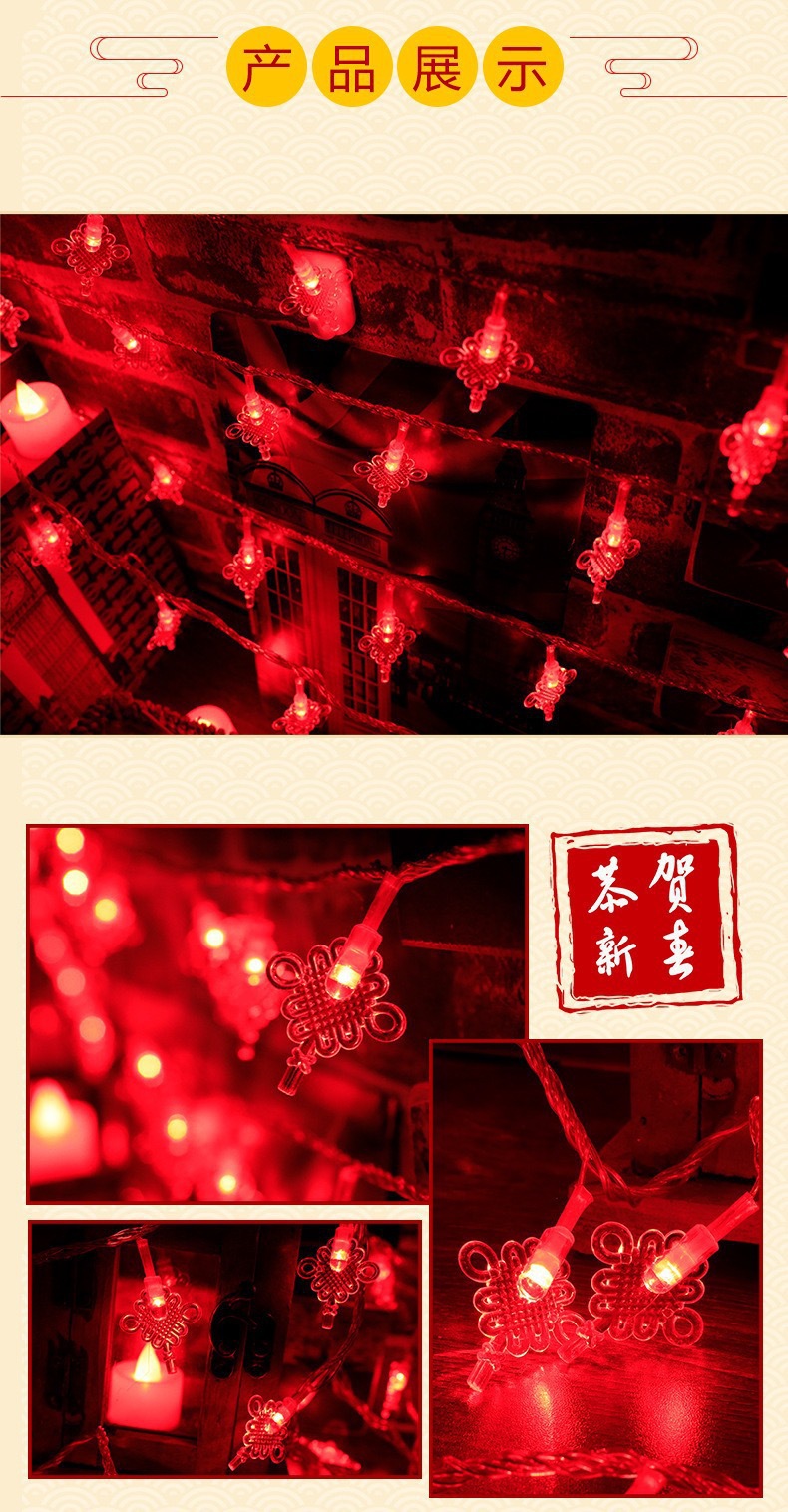 Baru Tahun Baru meriah lentera merah Cina simpul fu karakter dekorasi tali lampu warna Natal tata letak lampu LED tali lampu