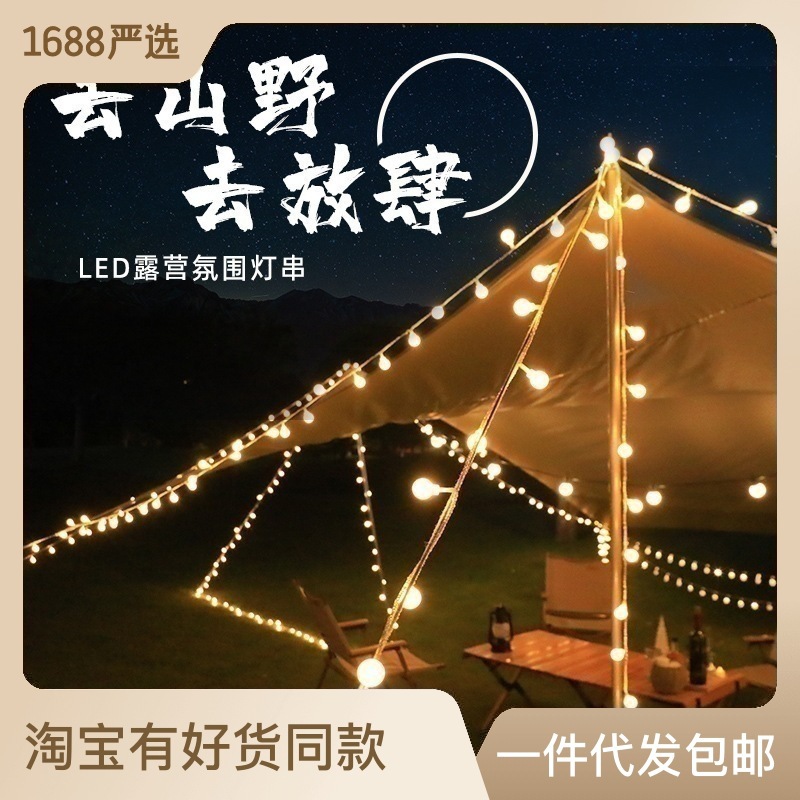 户外露营圆球灯串营地氛围布置网红灯天幕帐篷装饰太阳能星星灯串