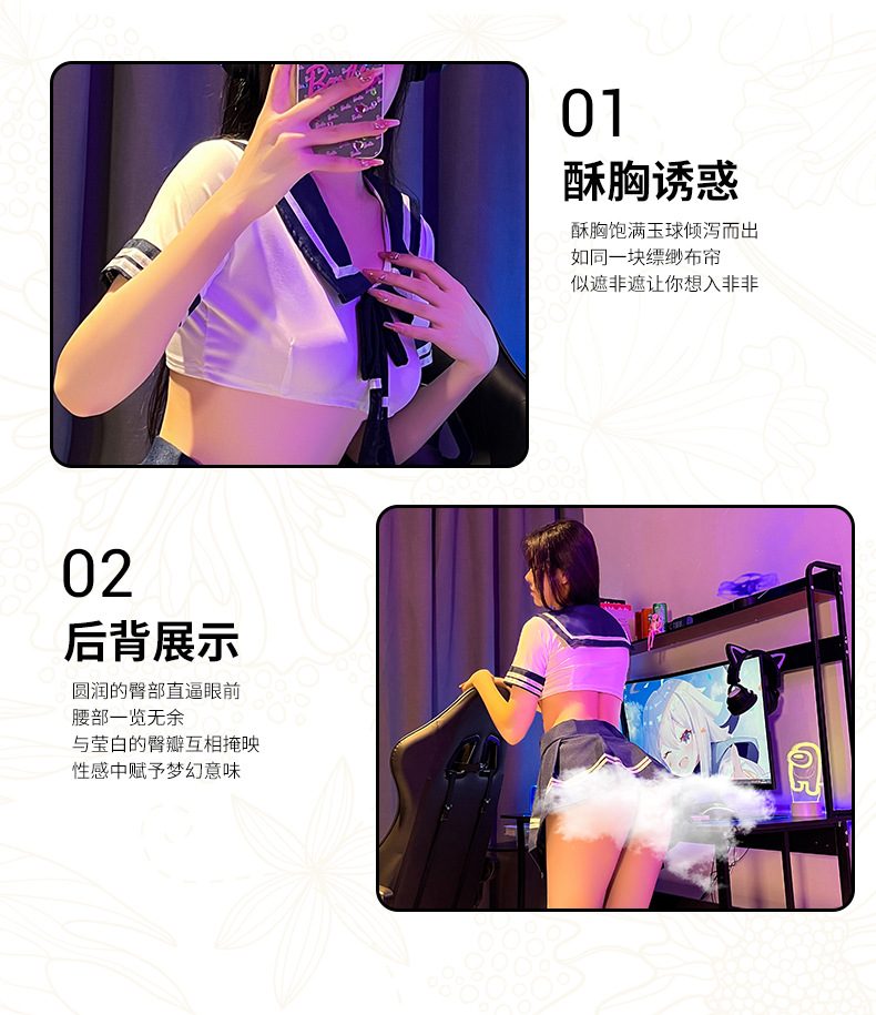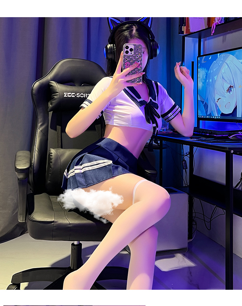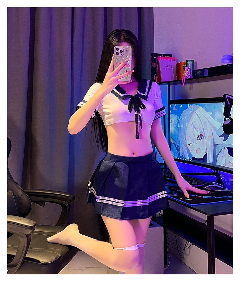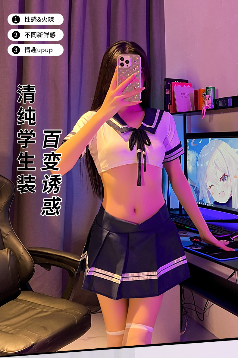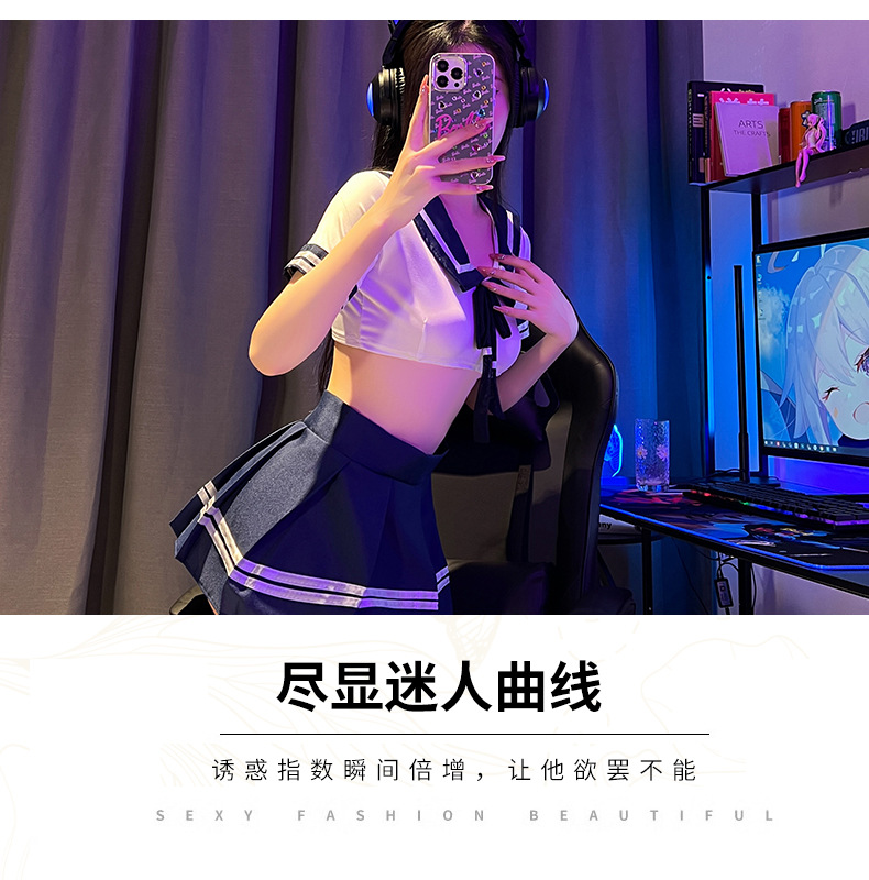 Lingerie seksi, pakaian Siswa murni, seragam pelaut, rok pendek menggoda seksi, setelan rok pendek gaya kuliah gadis lembut