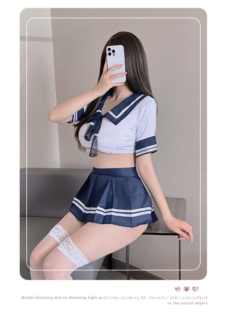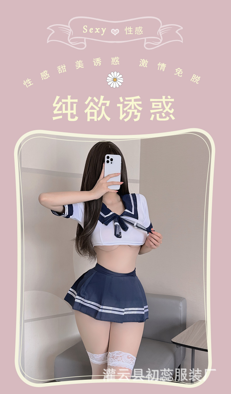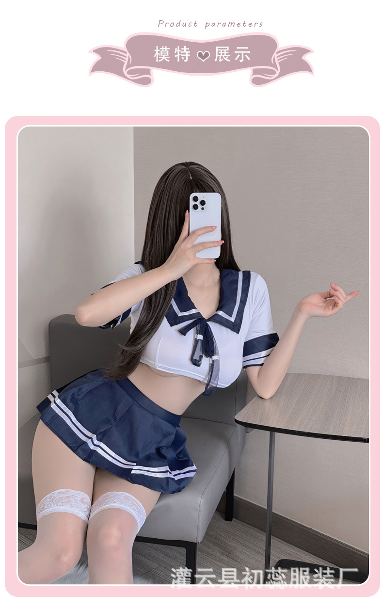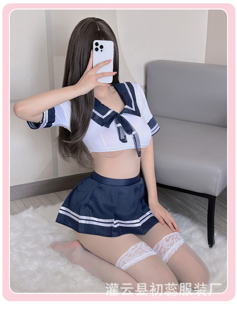 Pakaian dalam seksi Churui'er, kostum pelajar berbahan jaring, seragam wanita, rok pendek, kostum pelaut, permainan peran seksi dan memikat