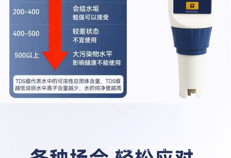 Alat uji kualitas air multifungsi untuk kadar garam, konduktivitas EC, pH, keasaman dan kealkalian, pembiakan, rumah tangga, detektor TDS presisi tinggi