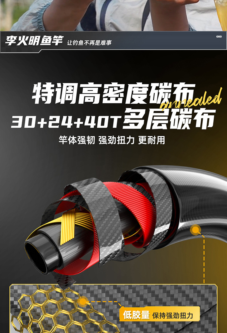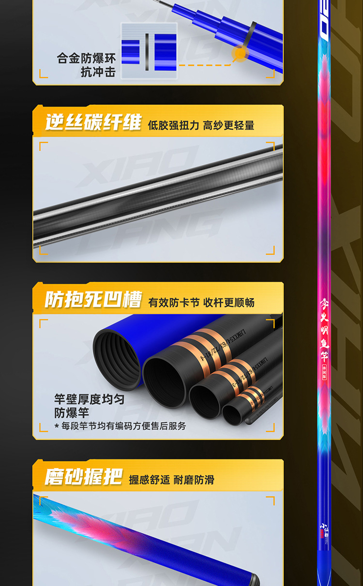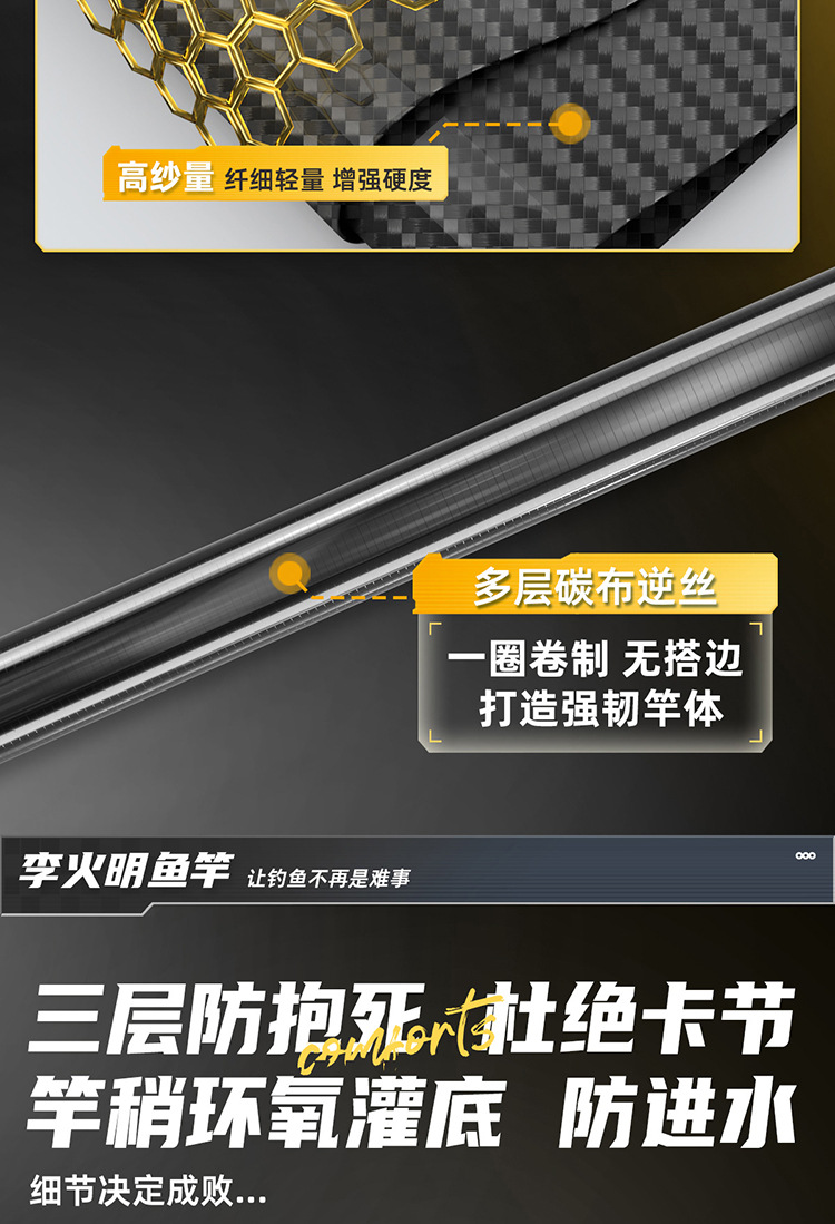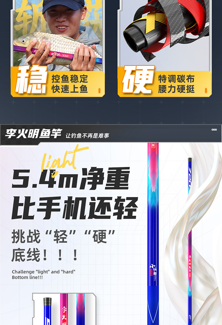 Xiaohuanglang tongkat pancing Super ringan, super keras tongkat pancing tangan ikan mas joran lubang hitam karbon ringan Li huoming pancing