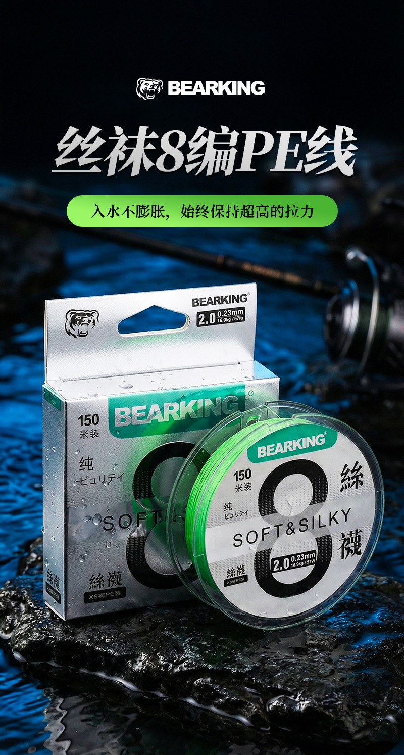 Senar Pancing Bear King Kuat 8-strand PE Senar Utama Original Silk untuk Umpan Ikan Besar Anti Gigitan Sub-line Super Halus
