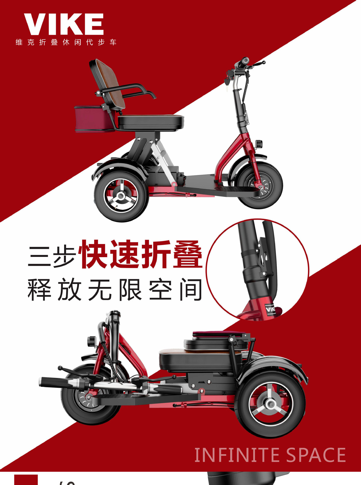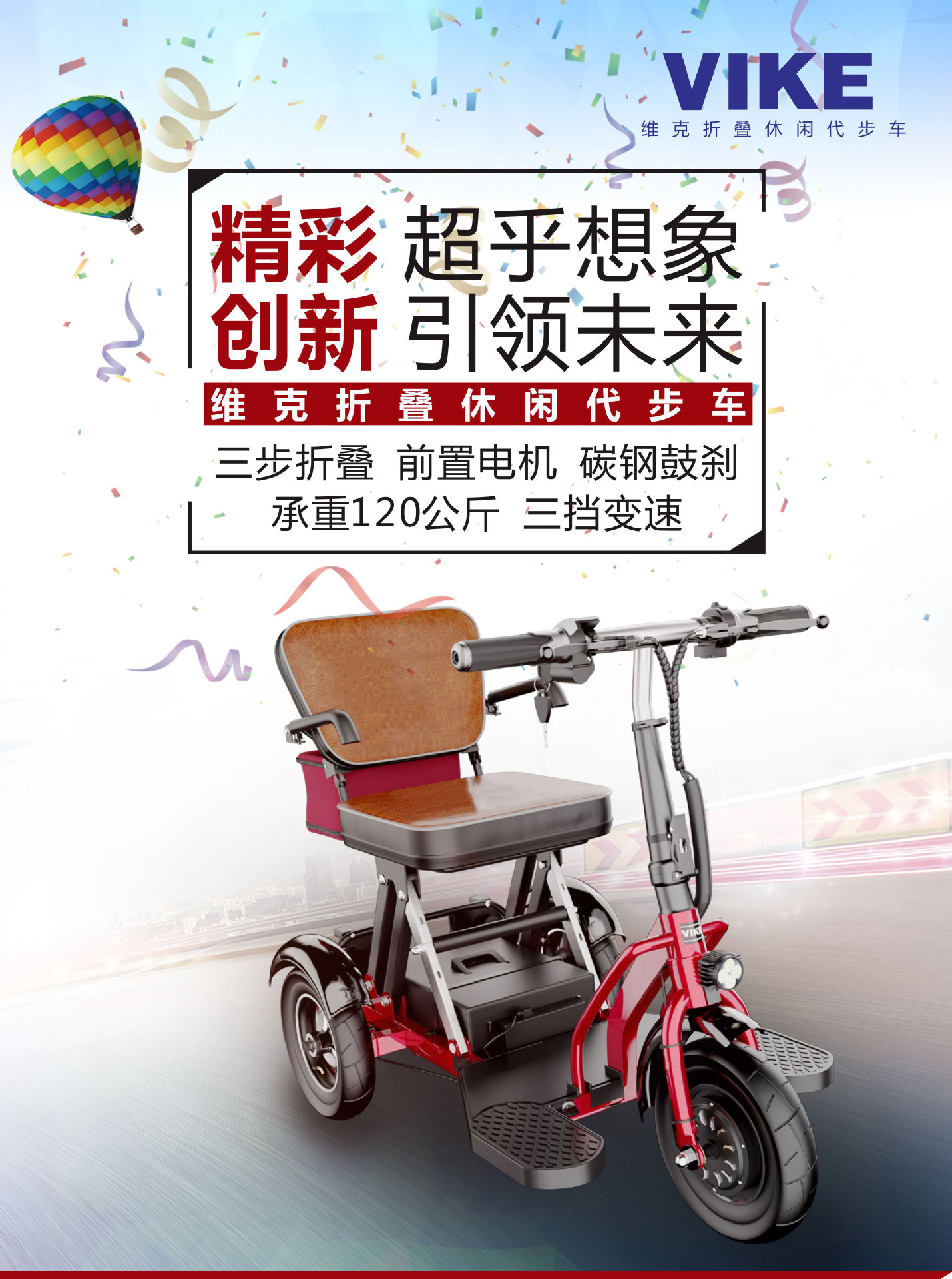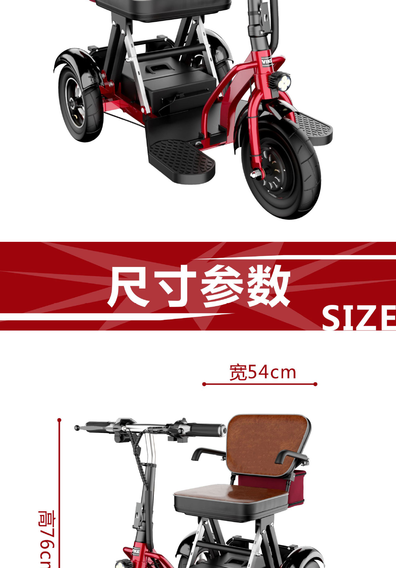 Sepeda roda tiga listrik lipat VIKE untuk lansia, skuter mobilitas, kendaraan listrik lipat untuk dewasa, kendaraan bertenaga baterai, kendaraan untuk penyandang disabilitas