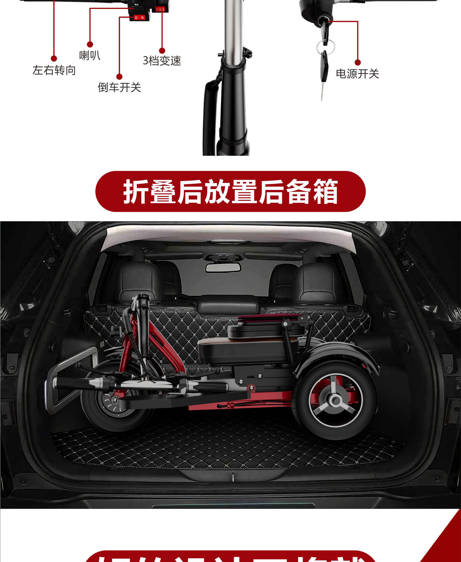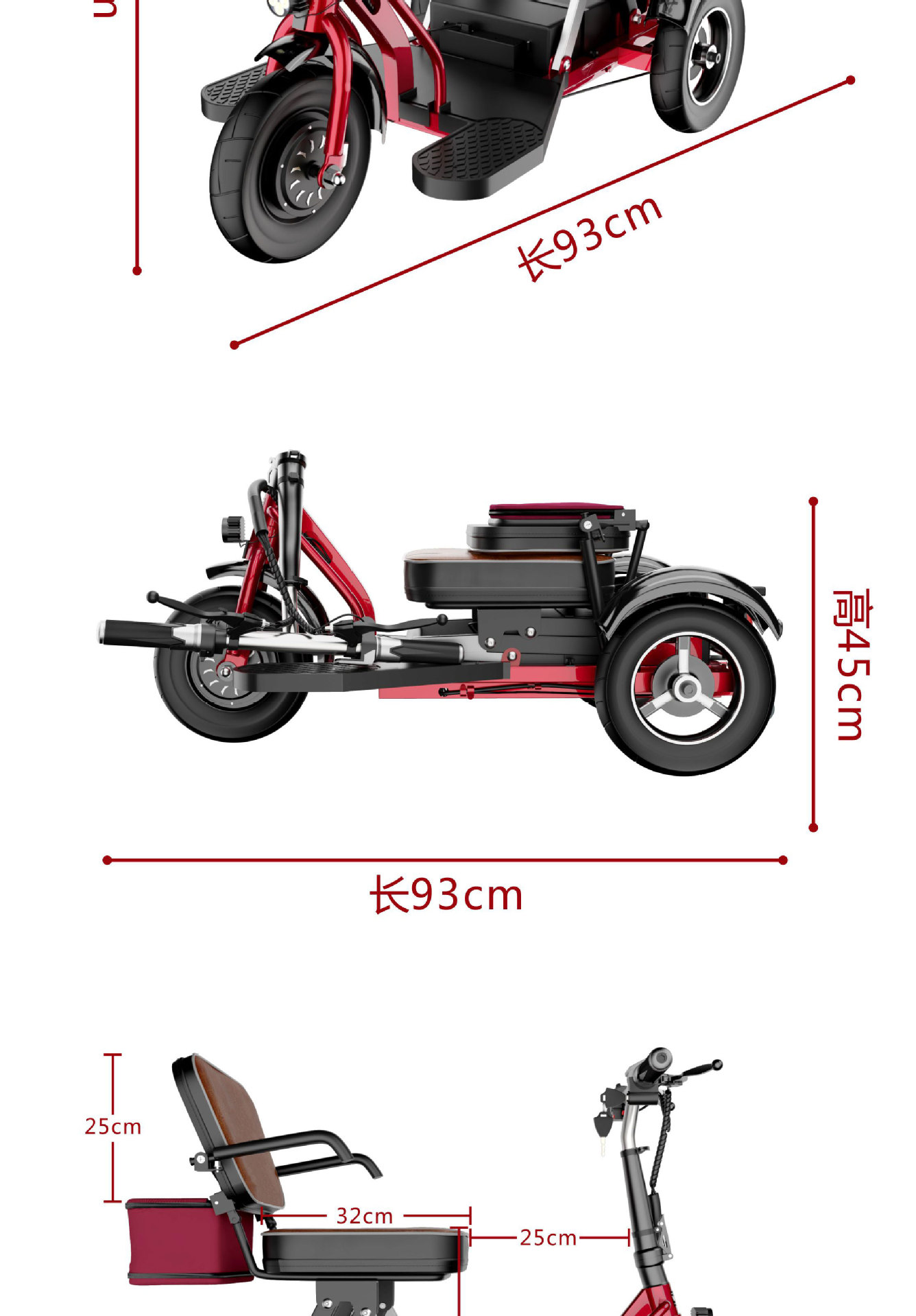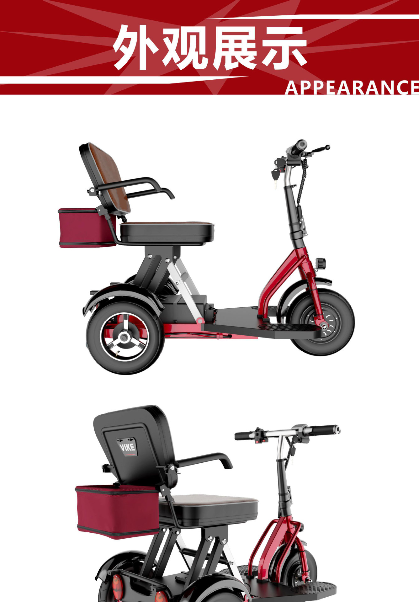 Sepeda roda tiga listrik lipat VIKE untuk lansia, skuter mobilitas, kendaraan listrik lipat untuk dewasa, kendaraan bertenaga baterai, kendaraan untuk penyandang disabilitas