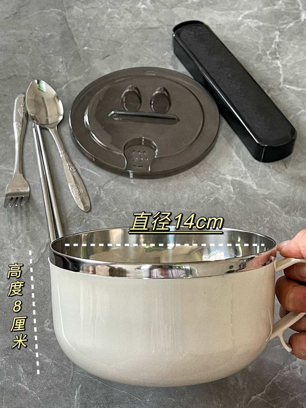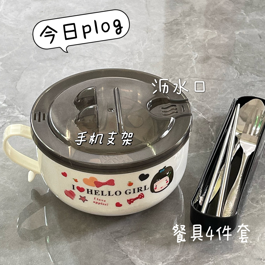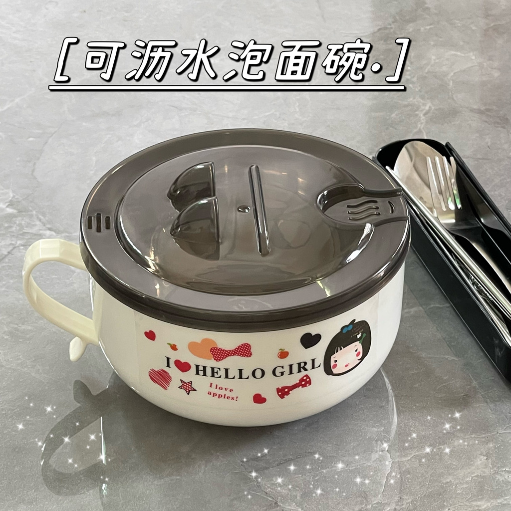 Mangkuk mie instan baja tahan karat dengan tutup, kotak makan siang mangkuk sup besar siswa wanita asrama mangkuk sumpit setelan kotak makan siang Jepang dewasa