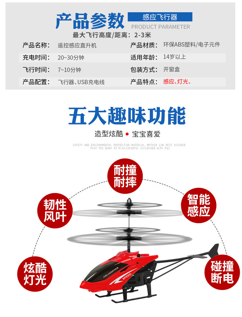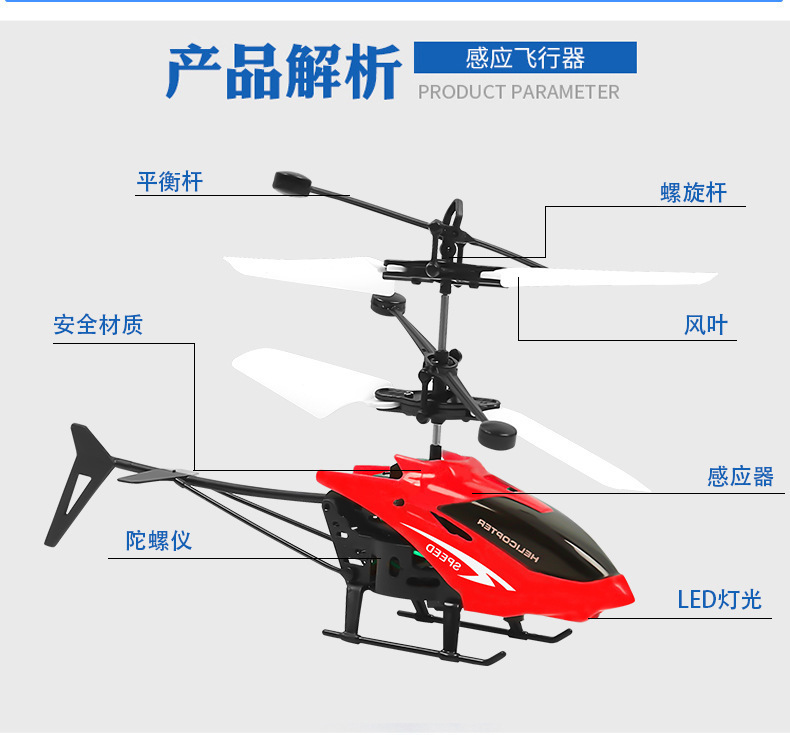 跨境遥控感应充电飞行器耐摔二通直升机地摊热卖发光悬浮玩具批发