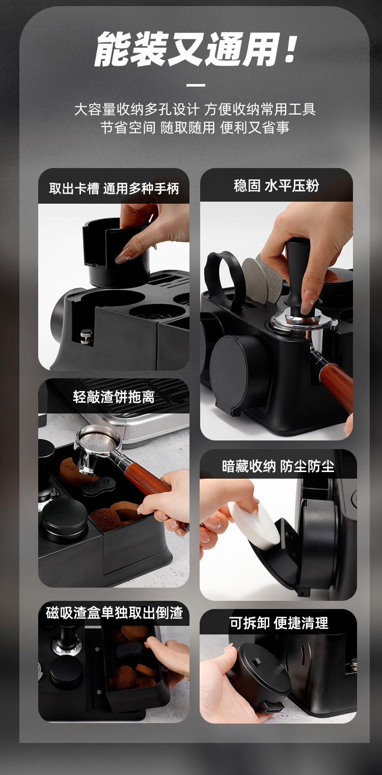 Pemegang tekan bubuk ABS kopi Italia, rak penyimpanan pegangan tekanan mengisi kursi multifungsi kotak residu kopi alat tekan bubuk