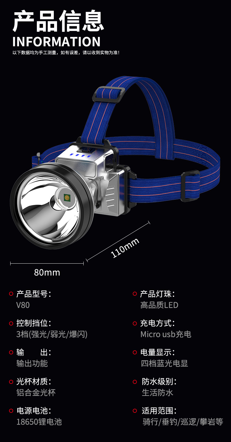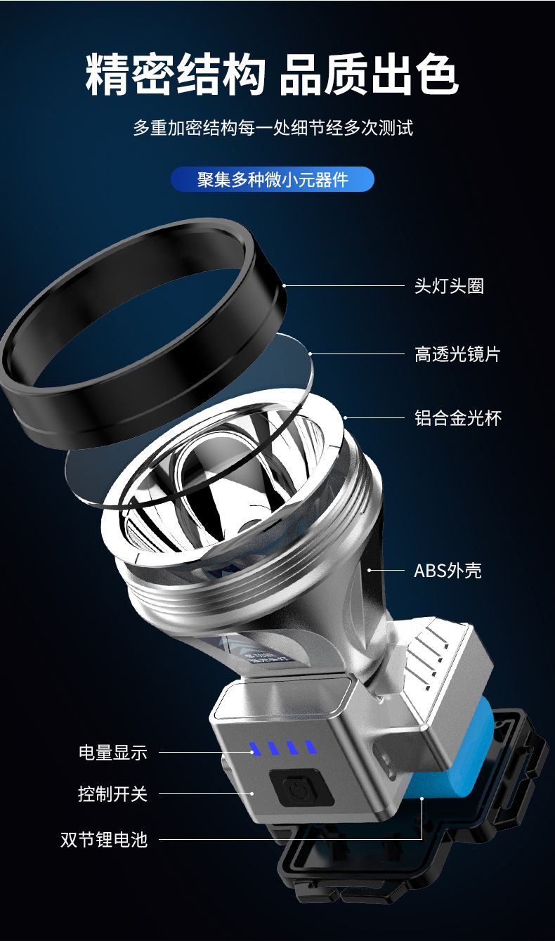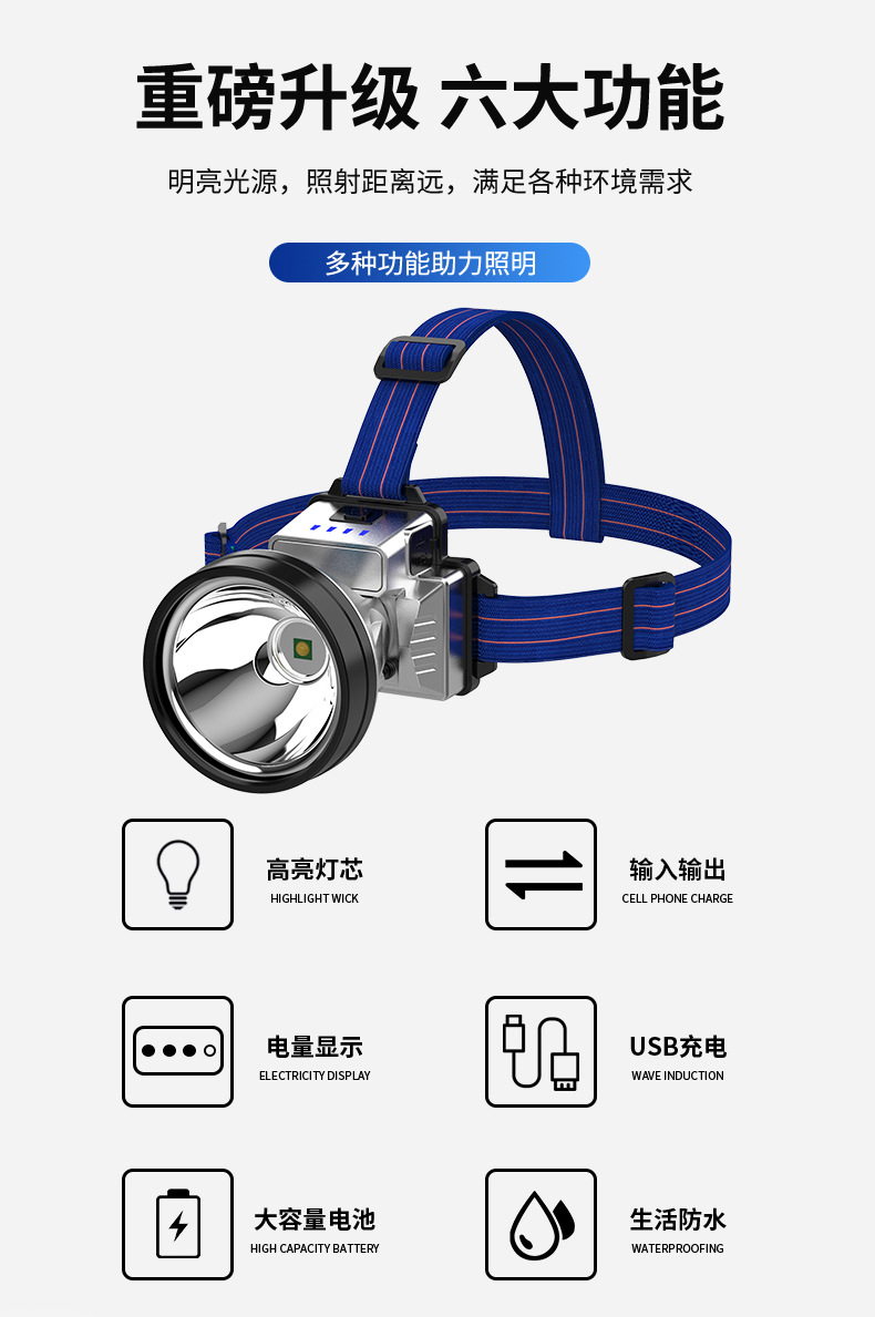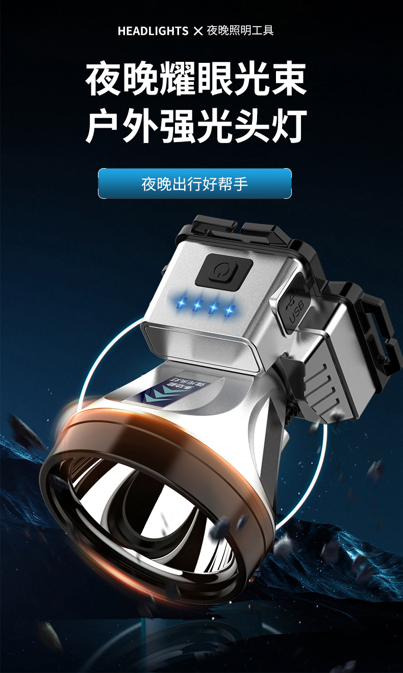 Lampu kepala Kemah luar ruangan, satu buah lampu depan berkemah listrik jarak jauh perak emas grosir