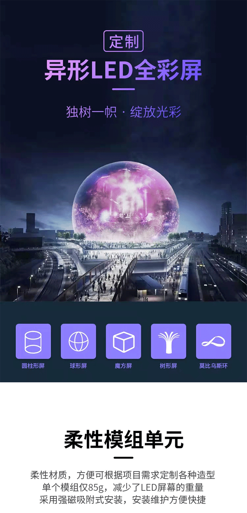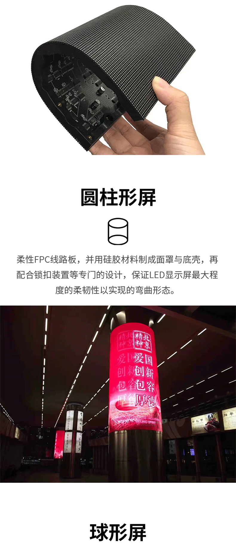 Layar fleksibel led langsung pabrik yang mengkhususkan diri dalam produksi berbagai tampilan led silinder P2P2.5P3led layar berbentuk khusus