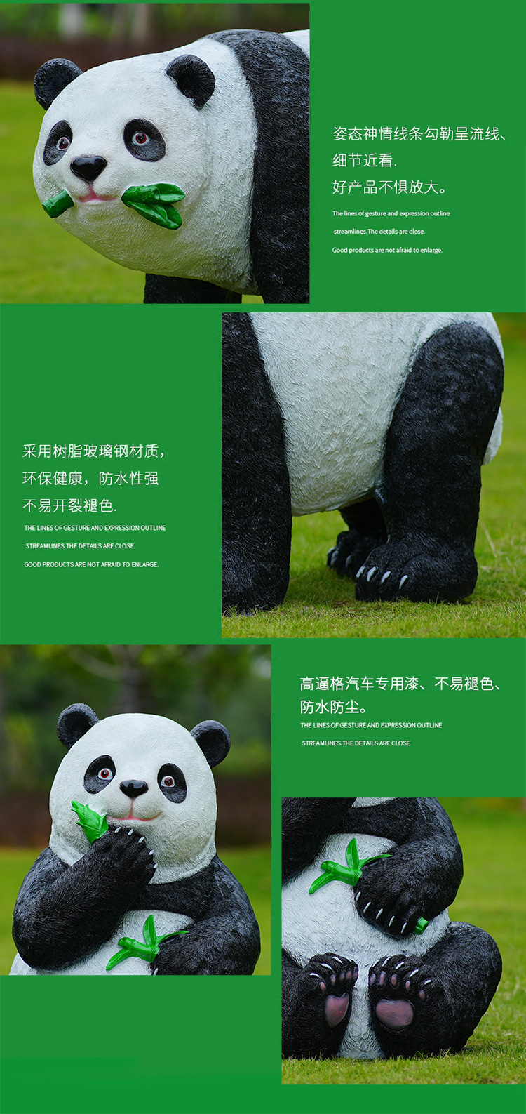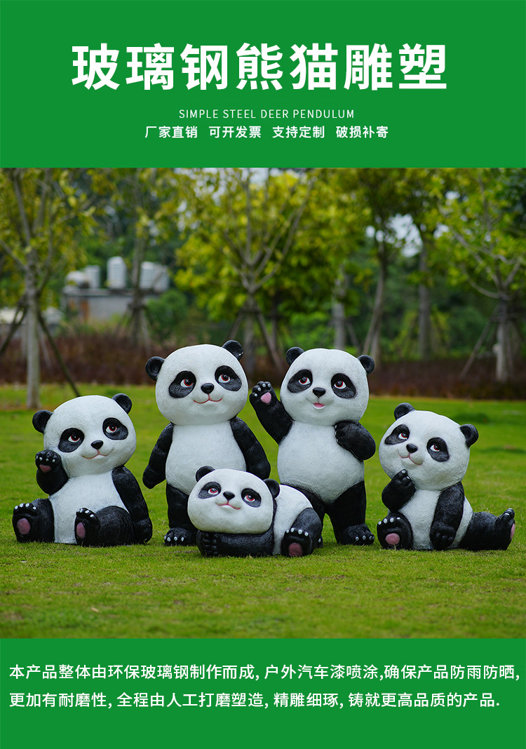 Dekorasi rumput taman komunitas kantor penjualan taman kanak-kanak ornamen hewan FRP patung panda kartun luar ruangan