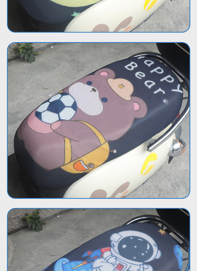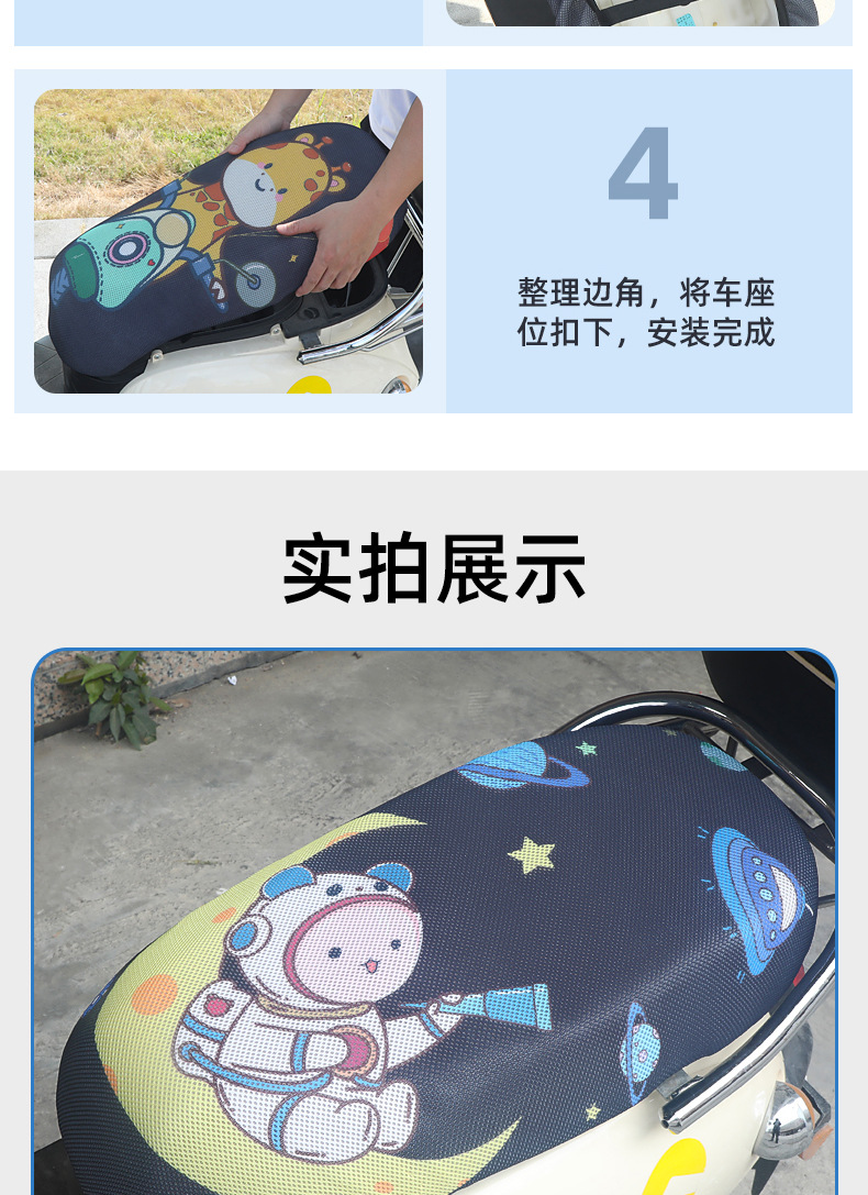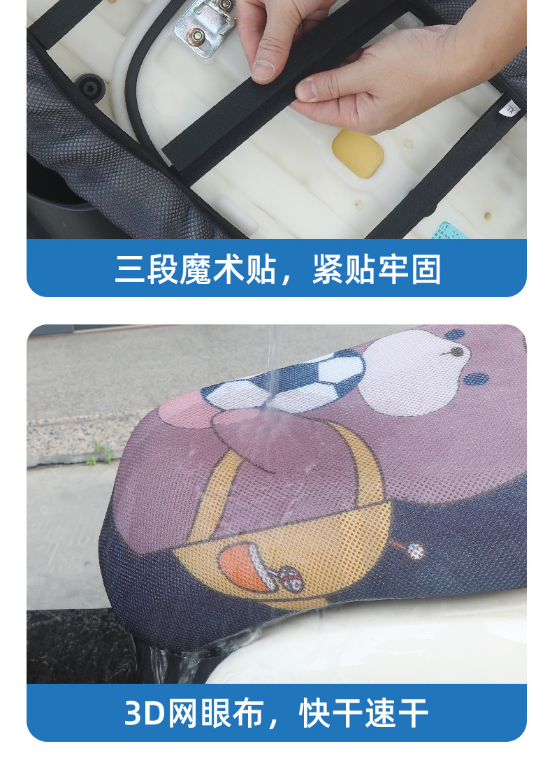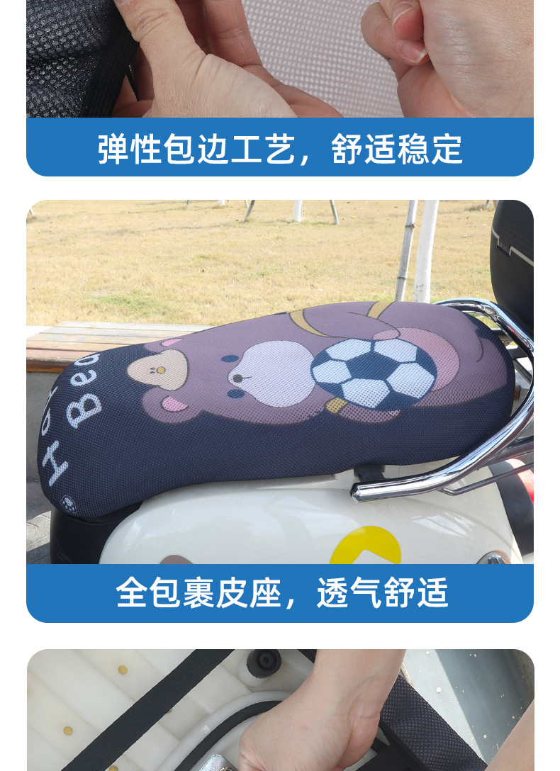 Sarung bantal sepeda motor 3D, pelindung kursi mobil elektrik kartun, pelindung matahari universal empat musim, sarung bantal jaring bersirkulasi tiga dimensi