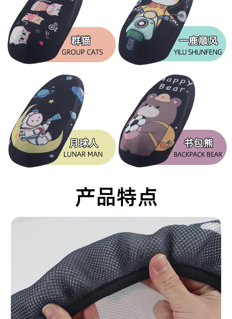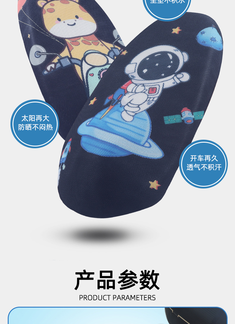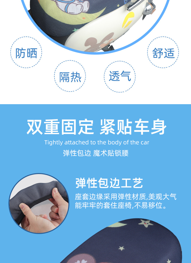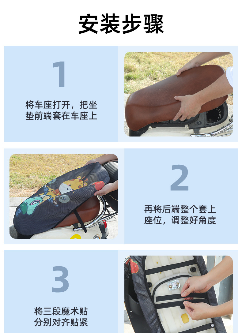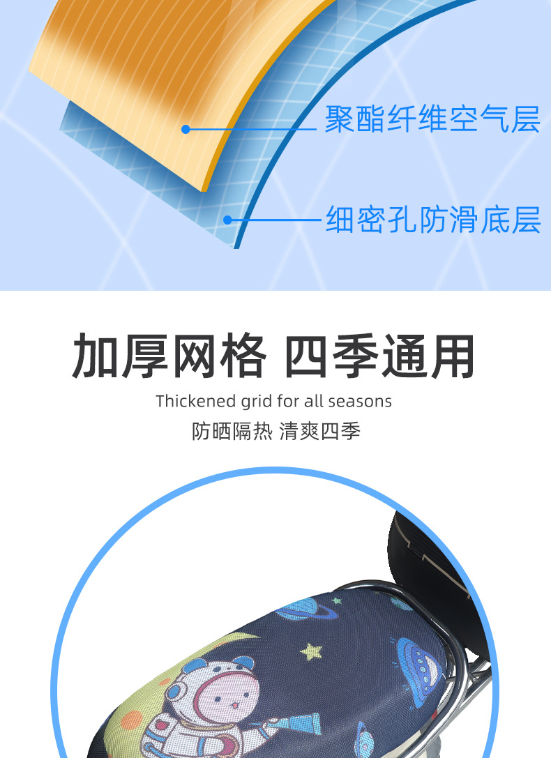 Sarung bantal sepeda motor 3D, pelindung kursi mobil elektrik kartun, pelindung matahari universal empat musim, sarung bantal jaring bersirkulasi tiga dimensi