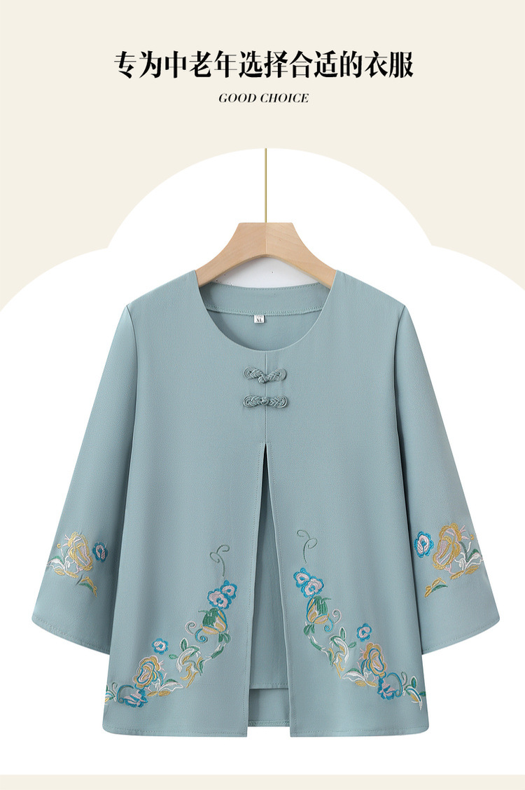 Ibu musim panas palsu dua potong atasan setengah baya dan orang tua musim semi dan musim panas pakaian nenek kemeja Lengan 3/4 kaus pakaian tua