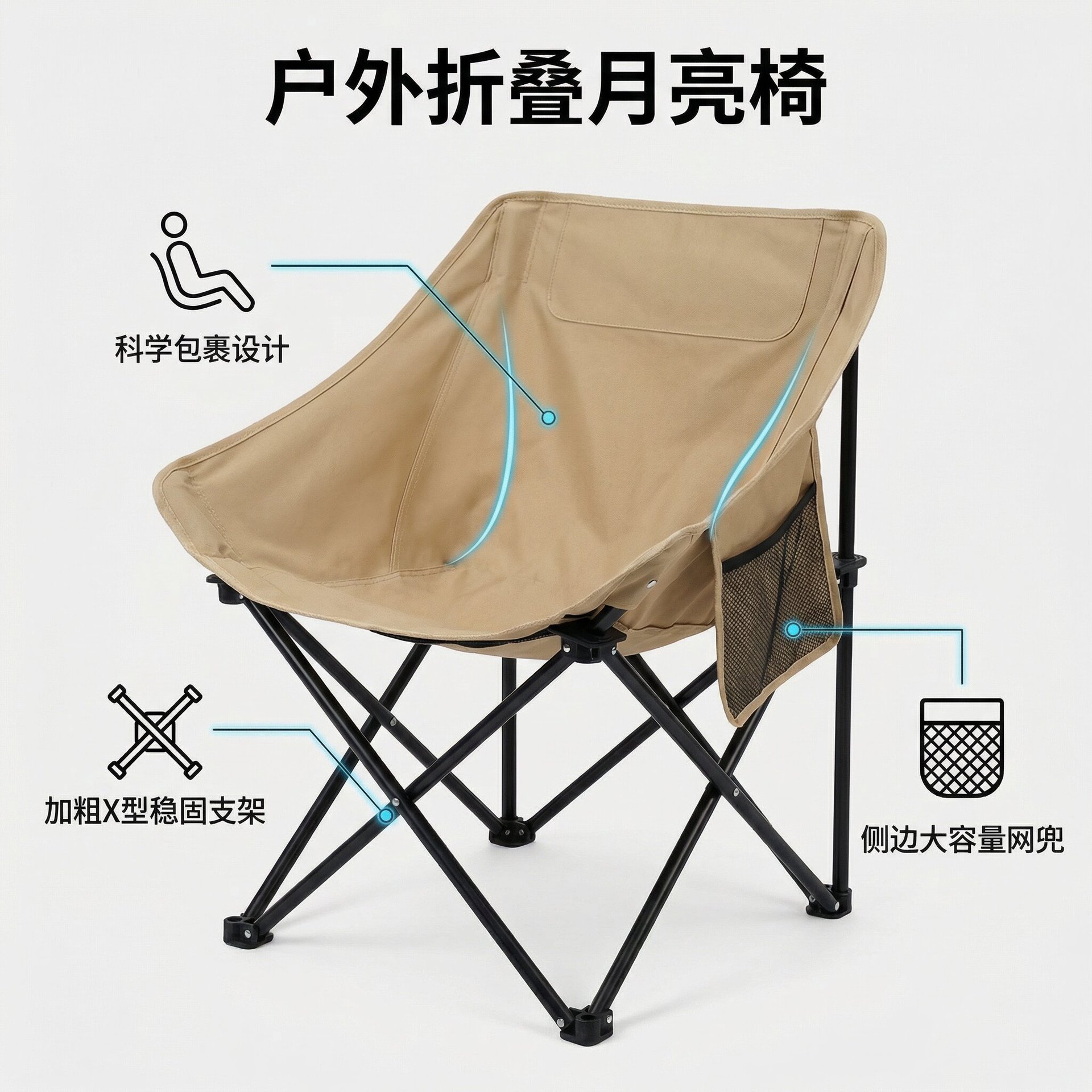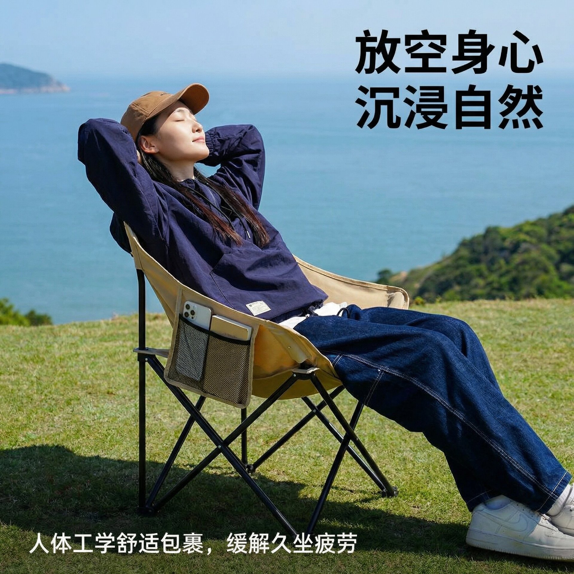 Kursi lipat santai untuk berkemah, tempat tidur lipat model bulan sabit, kursi lipat piknik luar ruangan, kursi tidur siang lipat, kursi portabel untuk perjalanan