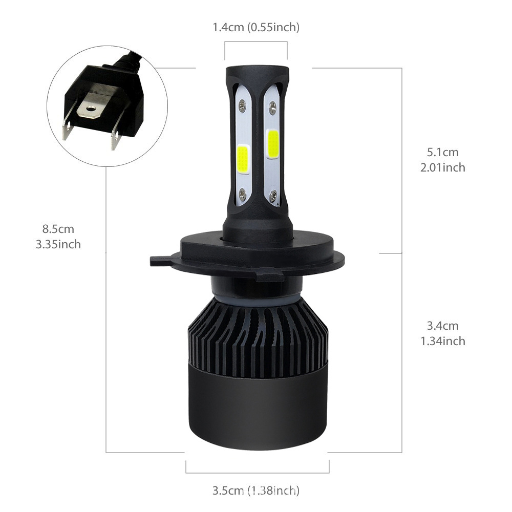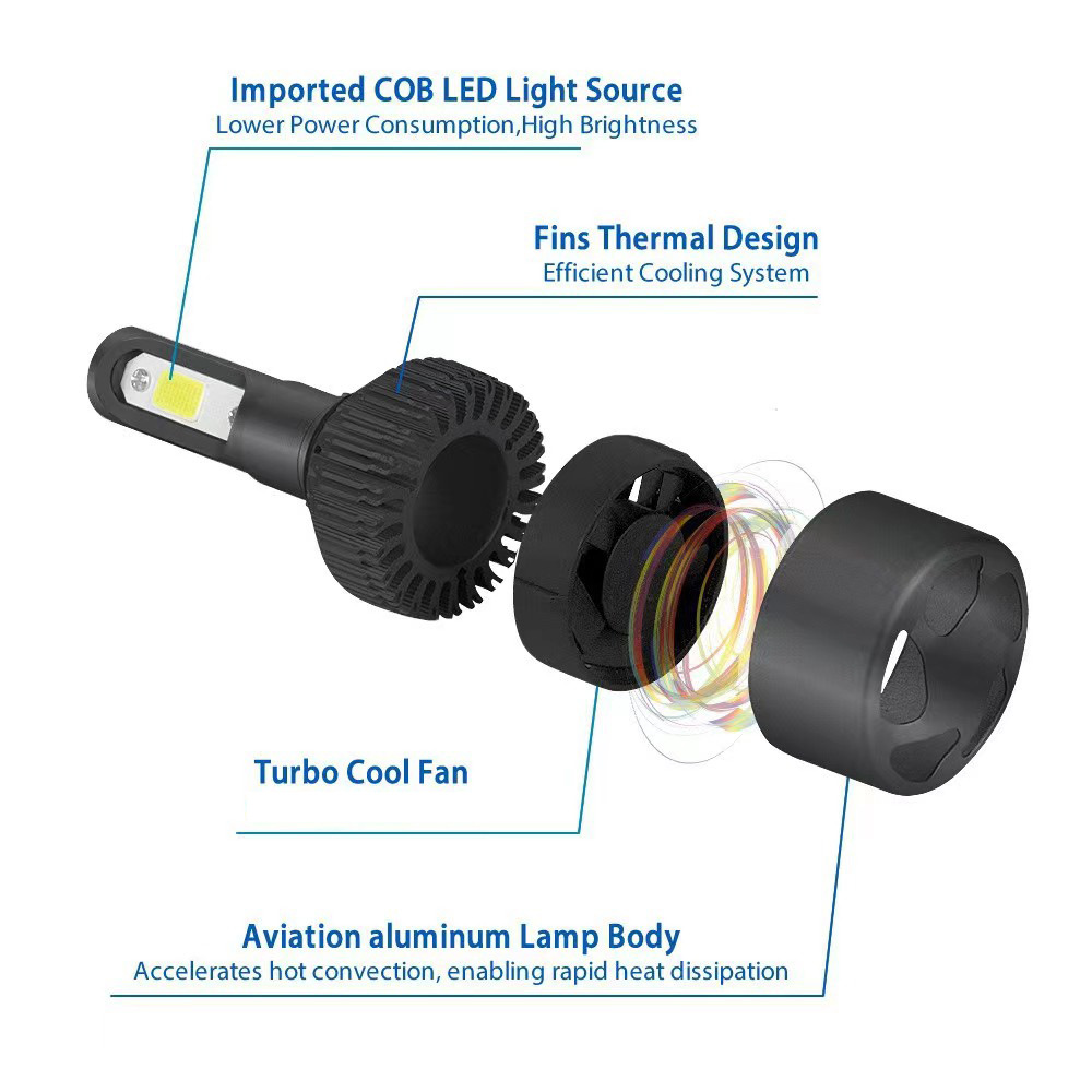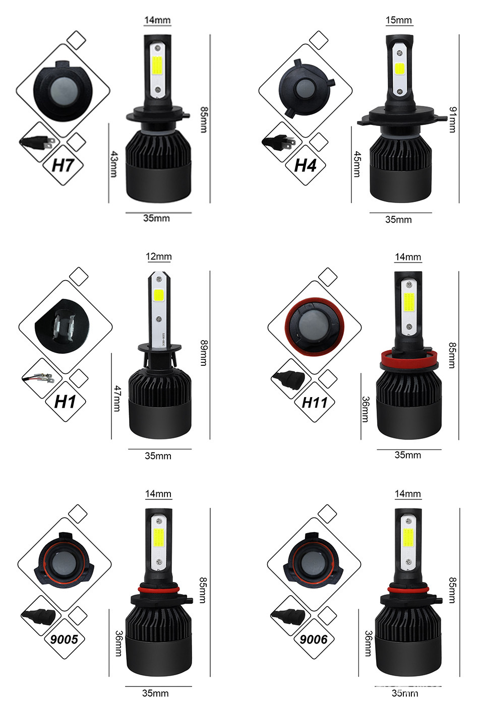 Lampu depan LED mobil S2, bohlam mobil depan 24W H1 H4 H7 9005 HB3 HB4 H8 H11 6000K