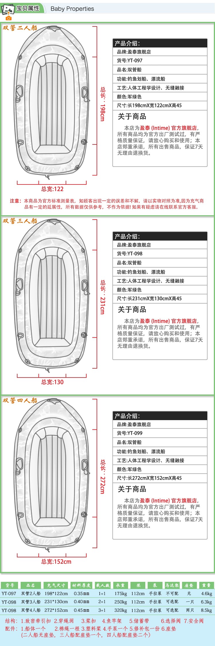 Perahu karet tebal Yingtai, dapat dilengkapi dengan motor, perahu tiup, perahu karet yang dipertebal, perahu memancing