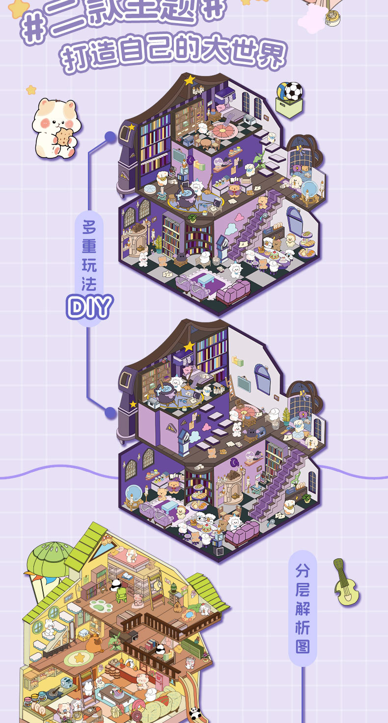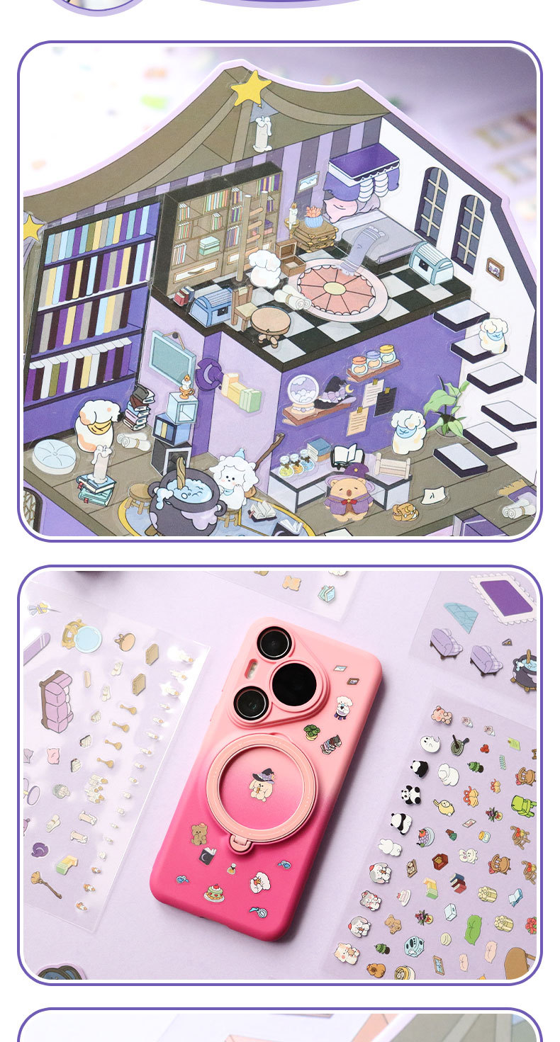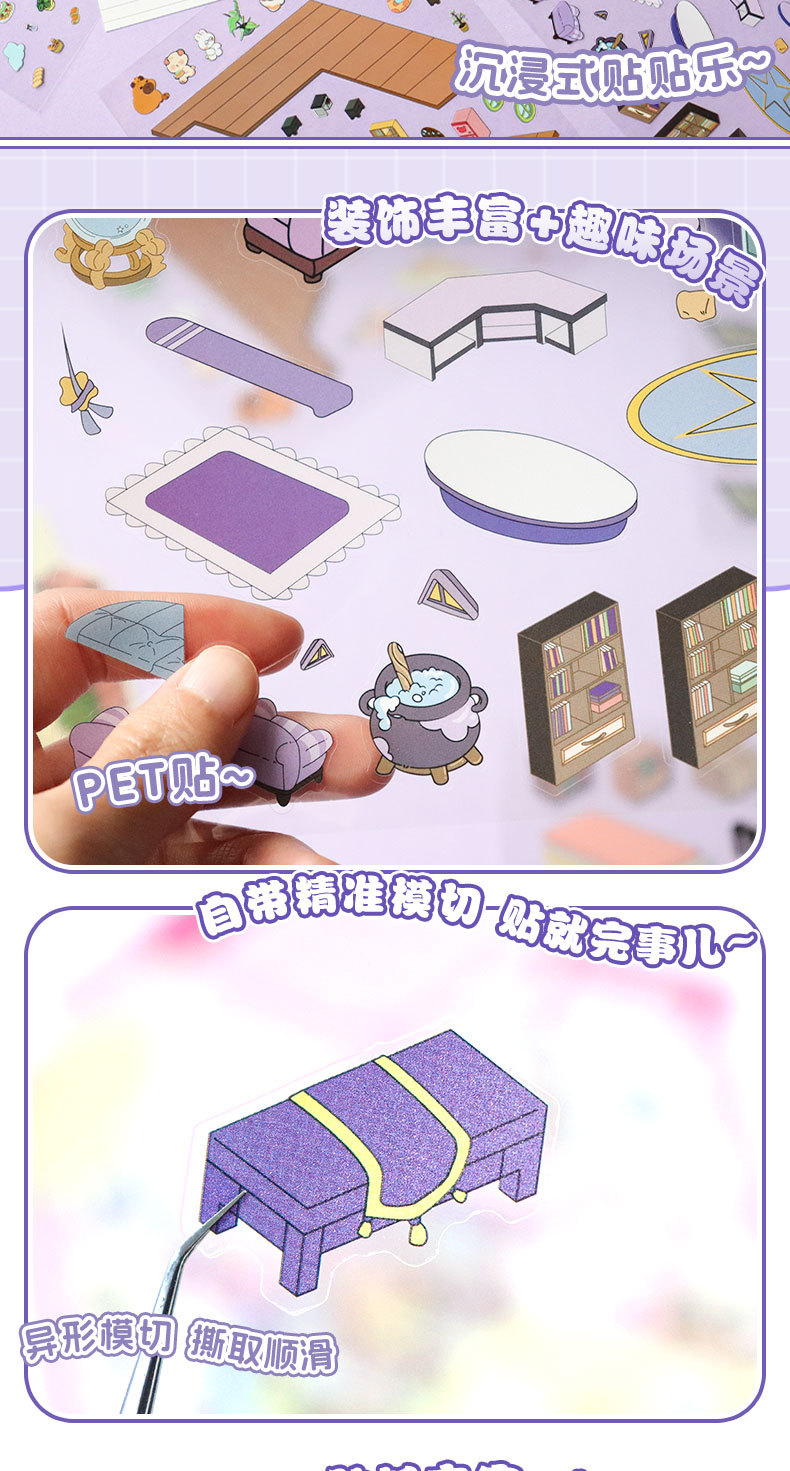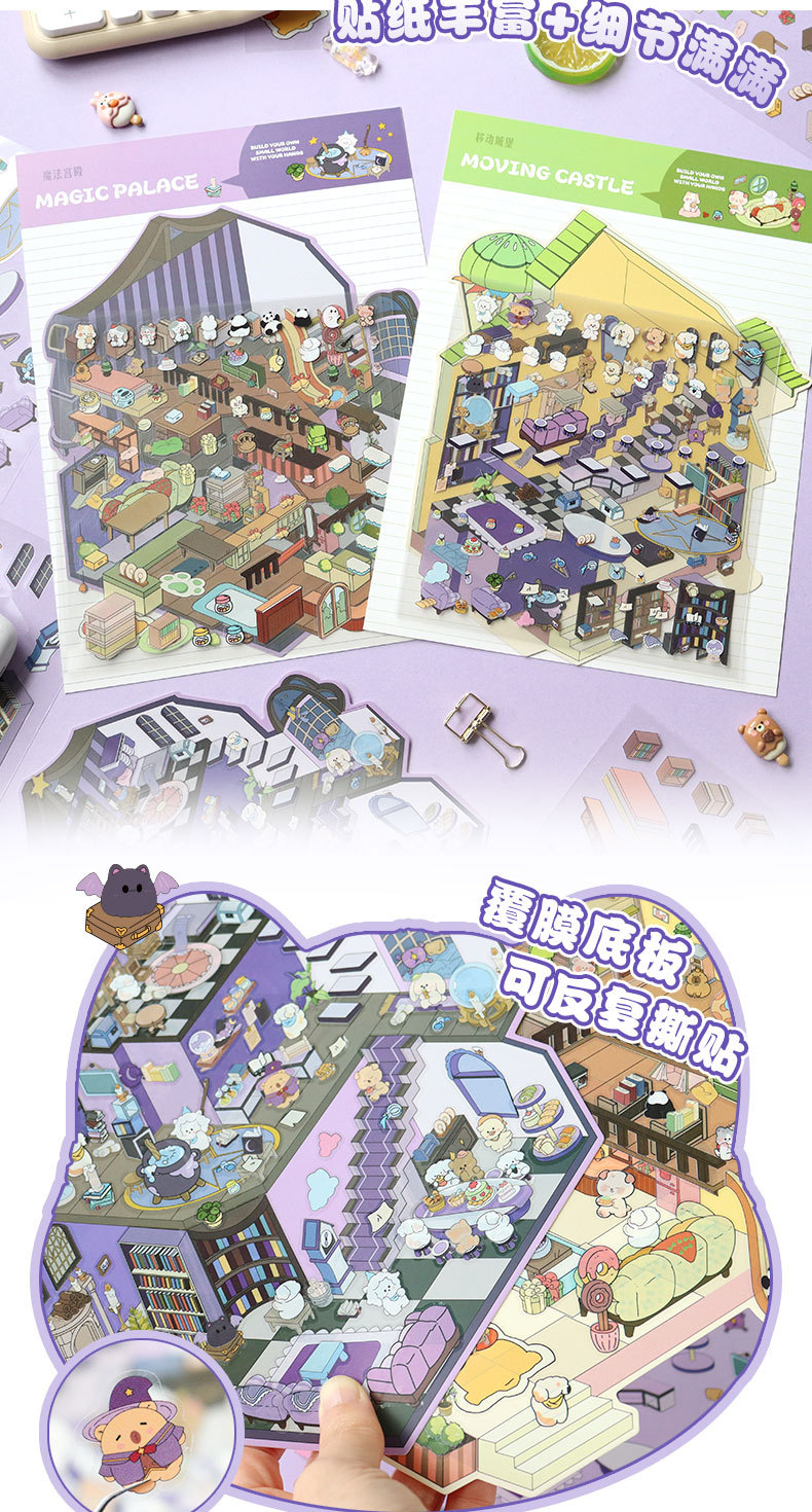 Stiker Pondok Lansekap Ukuran Besar Stiker 3D Visual Kartun Lucu Tumpukan Adegan Miniatur Tanpa Cukur Anak-anak