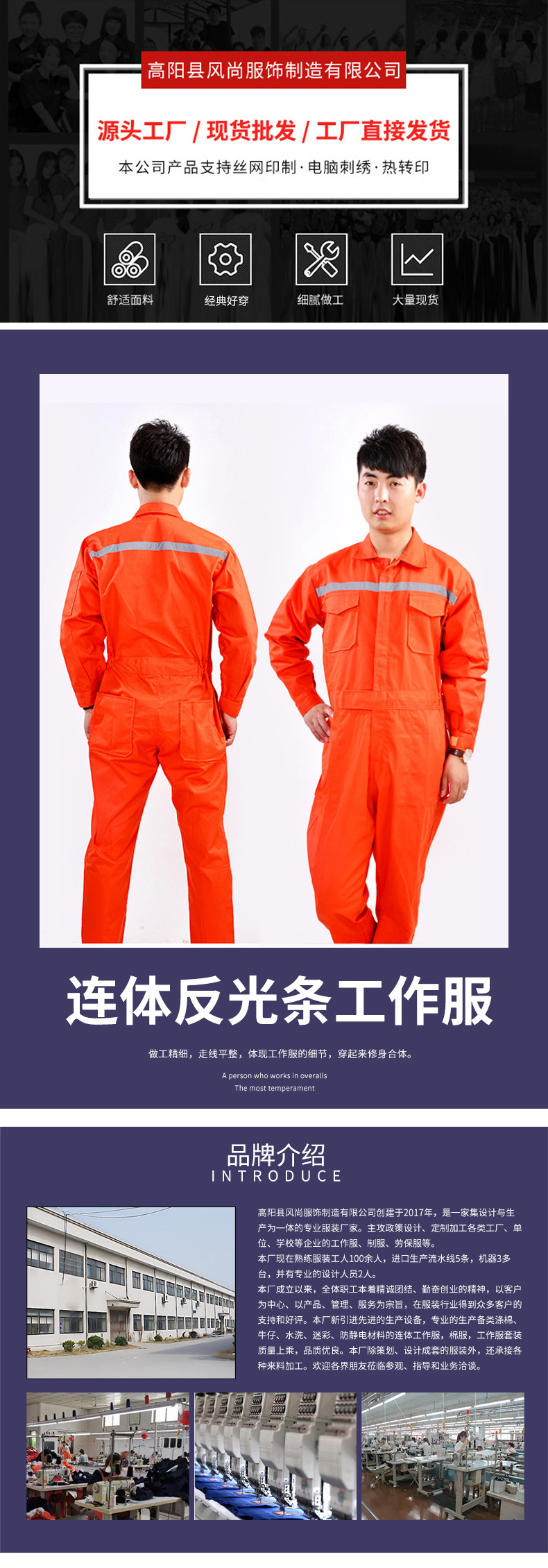 Pakaian kerja satu potong dengan strip reflektif, produsen pakaian pelindung kerja, setelan satu potong dengan jaket, pakaian dengan cetak logo, grosir
