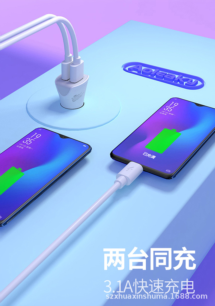 Aolike 5002 pengisi daya ponsel Mobil satu per dua pengisi daya mobil usb ganda Cepat port ganda grosir