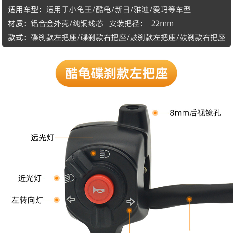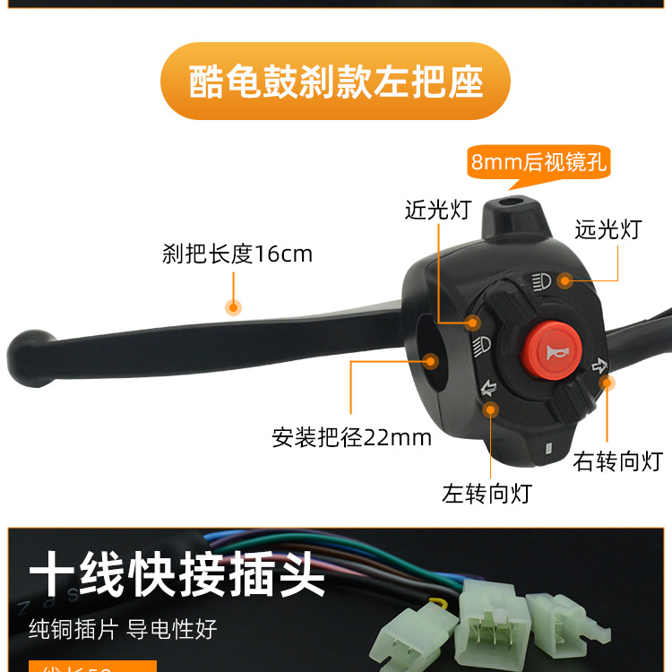 Baterai Little Turtle King mobil rakitan stang paduan aluminium kombinasi kendaraan listrik saklar kiri dan kanan pegangan rem cakram drum penyu keren