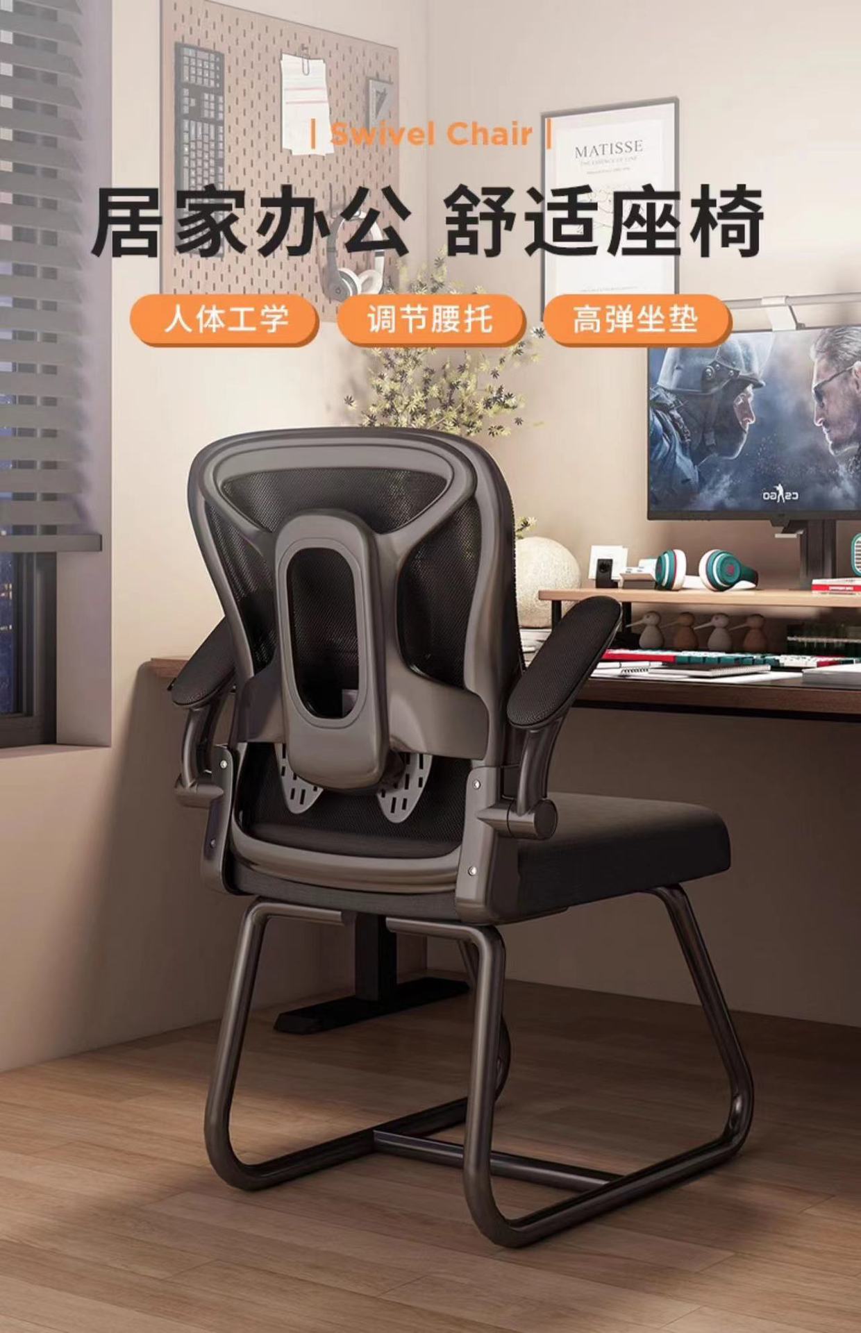 Kursi kantor rumah ergonomis, kursi komputer kantor ergonomis, kursi negosiasi, konferensi, jaring bersirkulasi