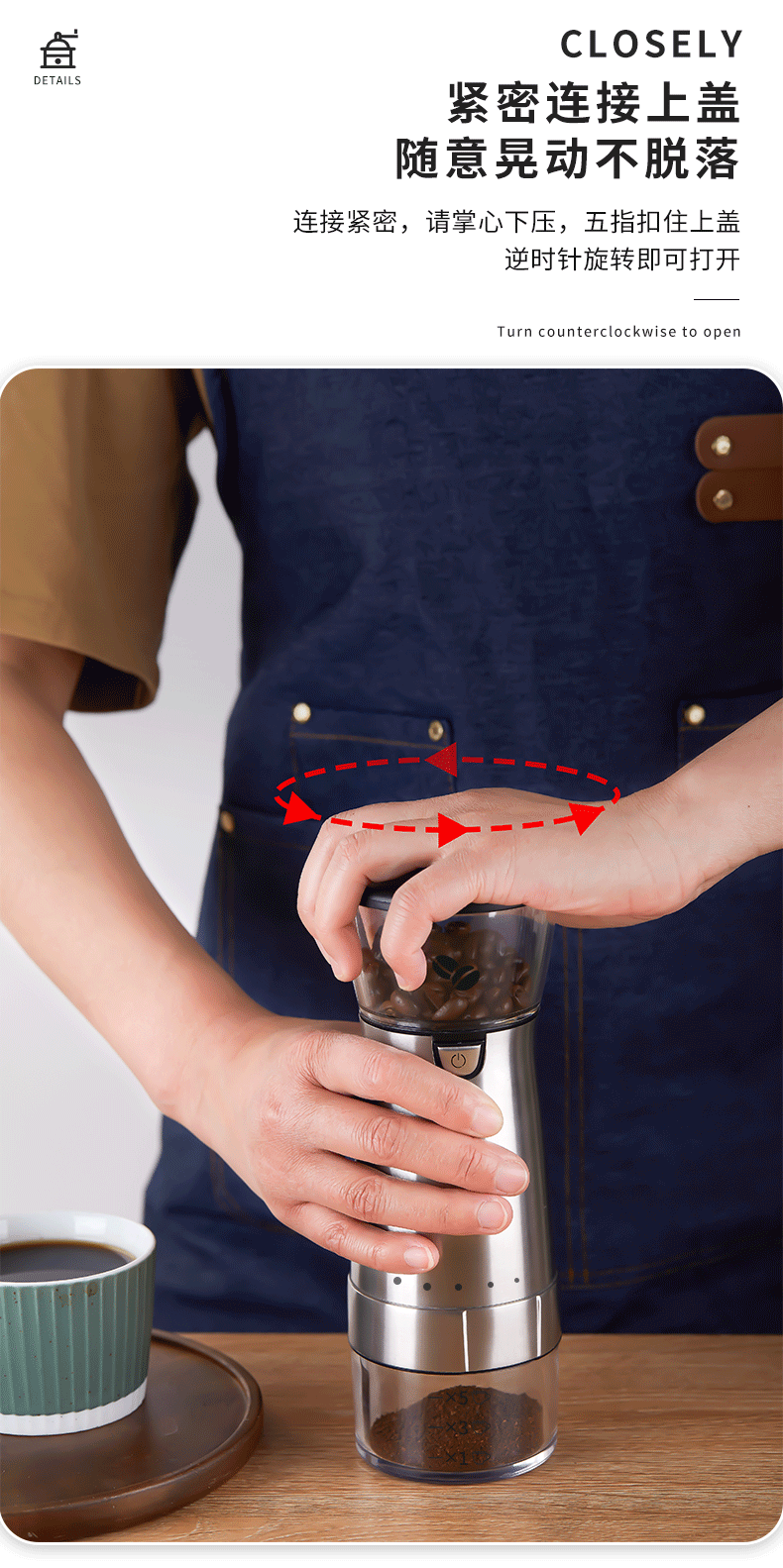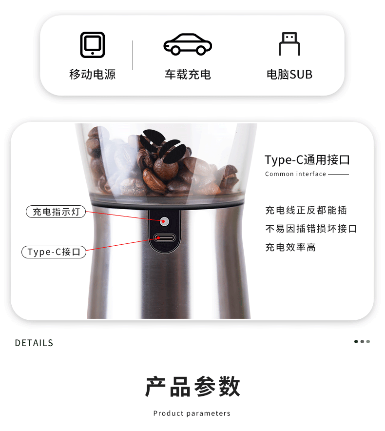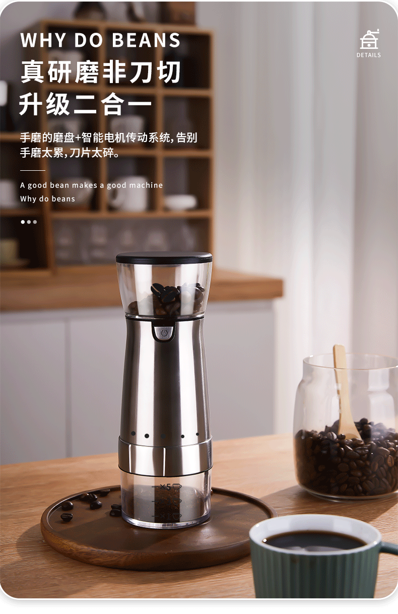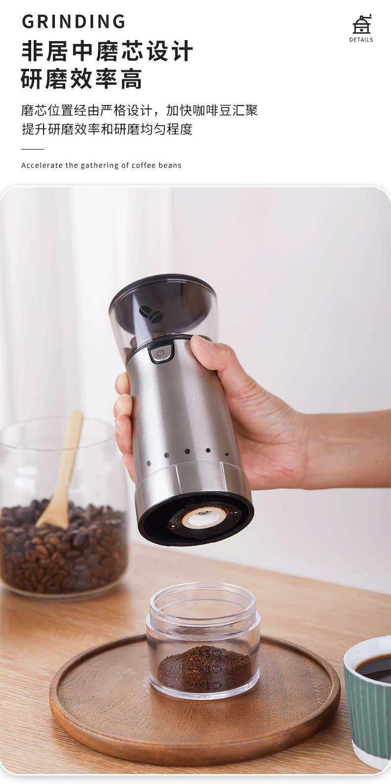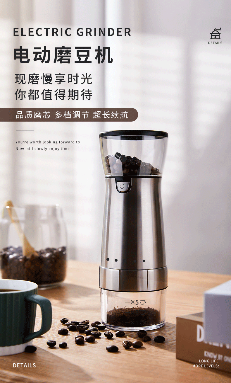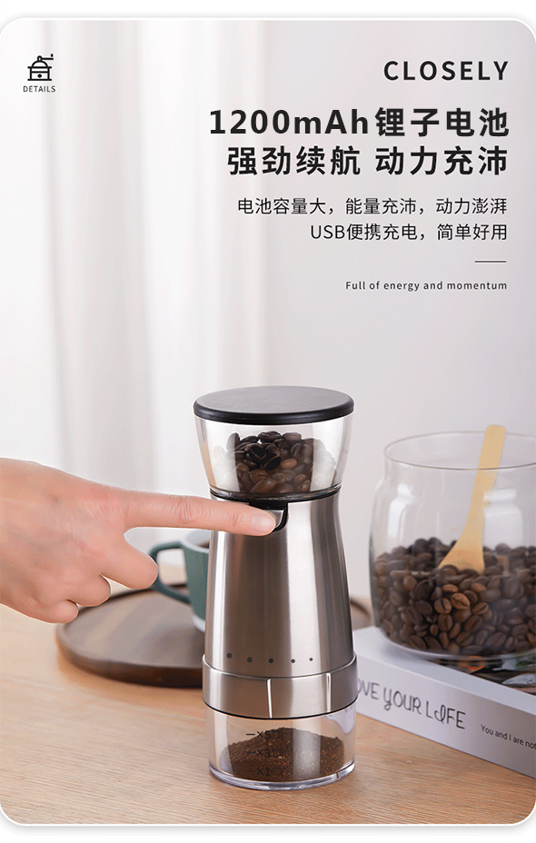 Penggiling kopi biji listrik yang dapat disesuaikan secara eksternal penggiling kopi portabel penggiling kopi USB penggiling kopi biji kecil rumah tangga otomatis penuh