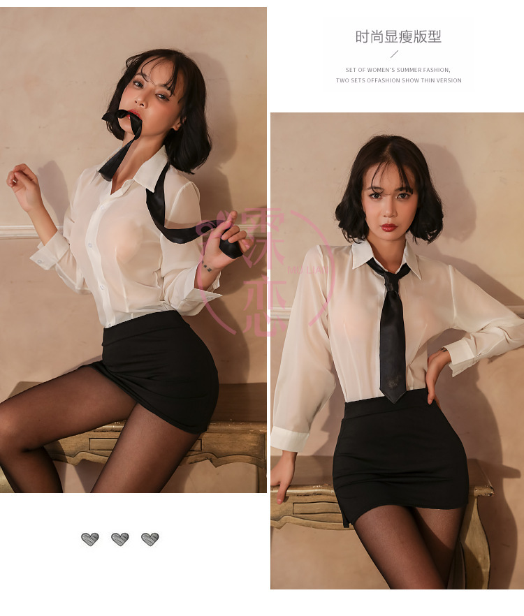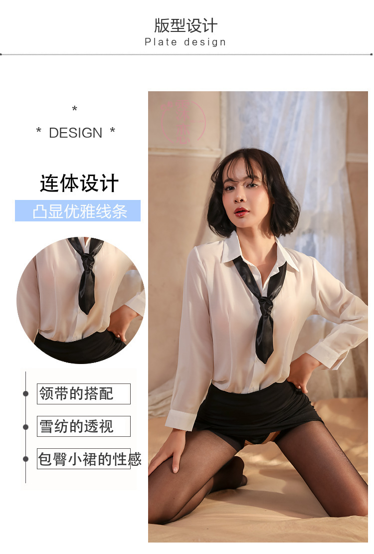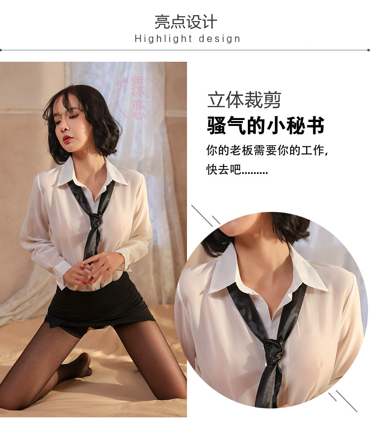 霂恋情趣内衣性感漏乳系带秘书包臀短裙纯欲露胸显大职业制服套装