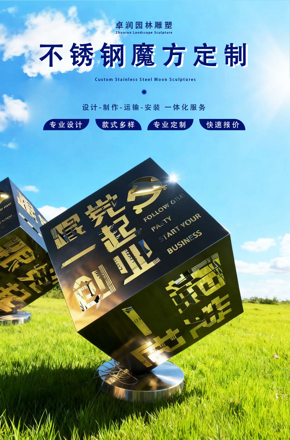 Patung bola berongga besar dari baja tahan karat yang bercahaya, kubus Rubik untuk luar ruangan, ornamen lanskap air perkotaan di kampus dan alun-alun