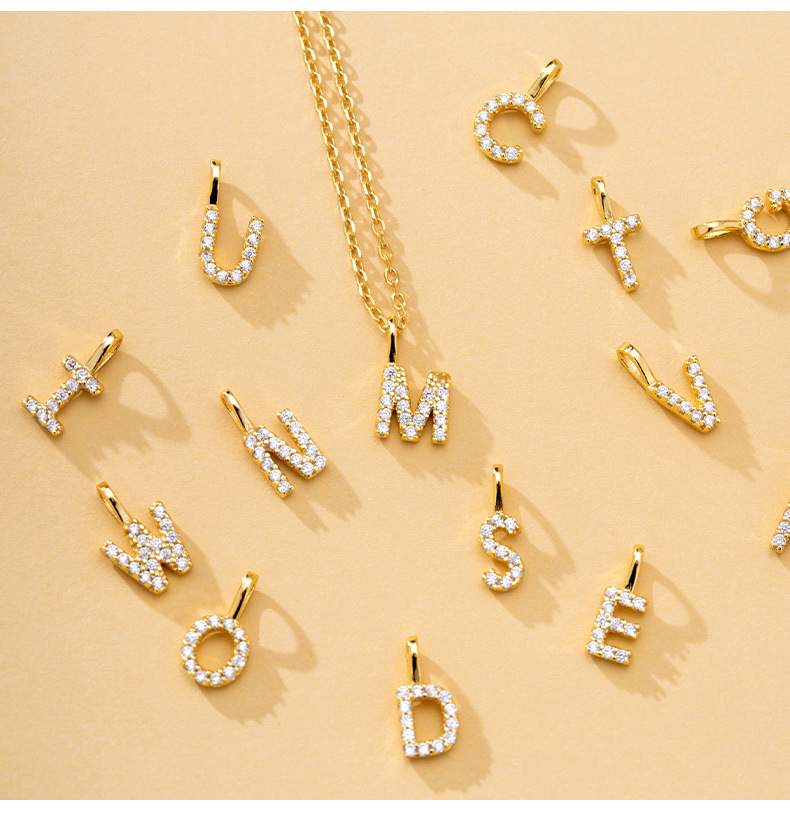 S925 Perak Murni Nama Anda Lintas Batas Penuh Berlian 26 Huruf Inggris Liontin Perak Murni Kalung Serbaguna Rantai Tulang Selangka