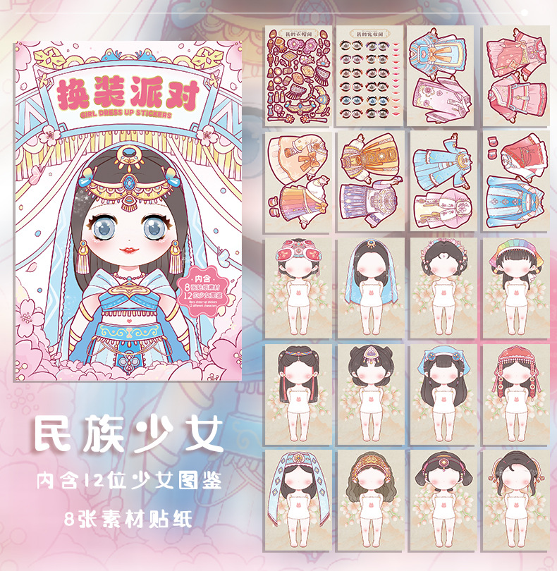 Stiker berubah putri cantik stiker rias wajah berubah buku riasan anak bahan jurnal mainan anak perempuan stiker Jurnal