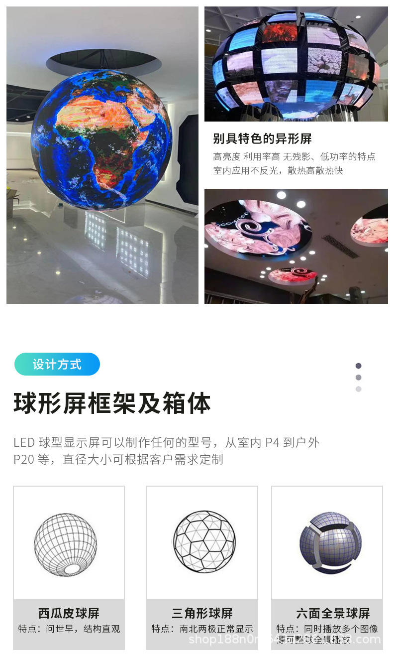 室内LED球形屏酒吧舞台商场台球室展示全彩圆形屏创意LED异形屏