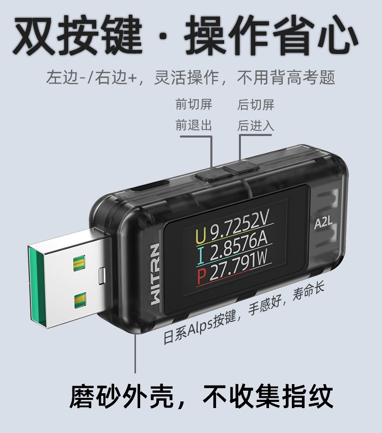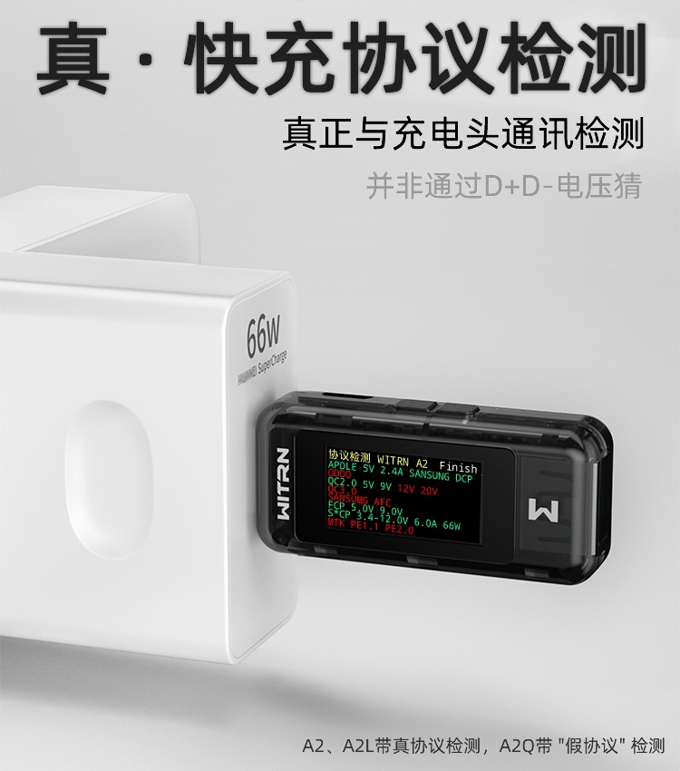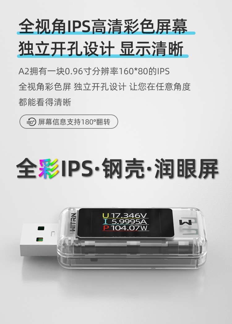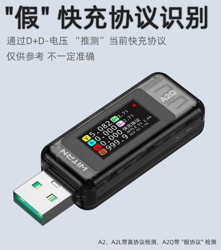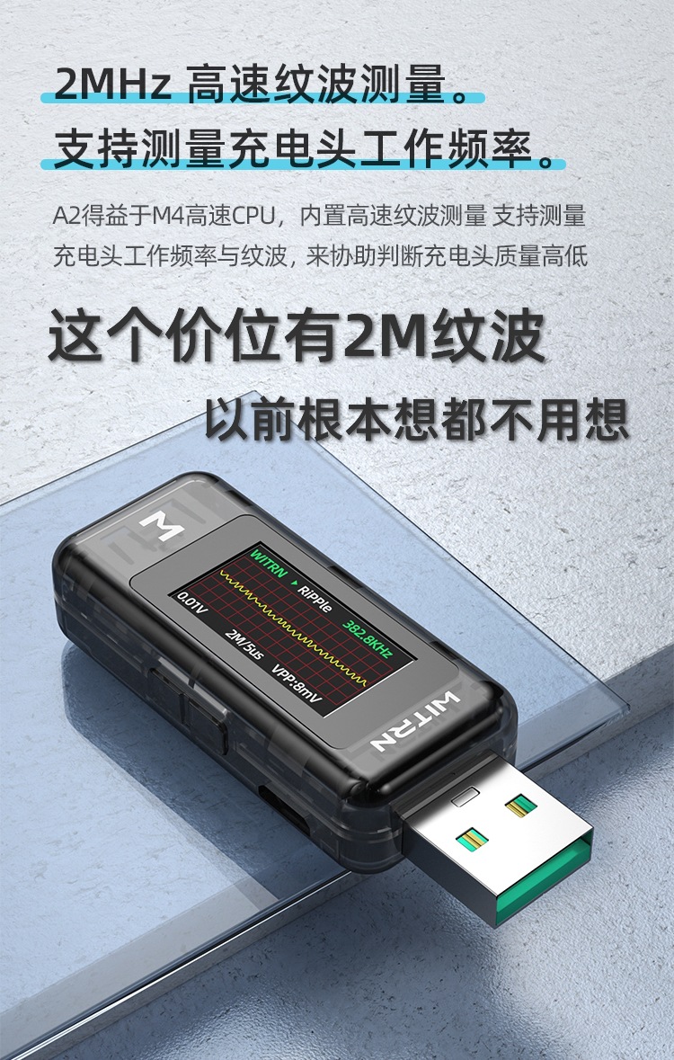 WITRN A2Q Weijian tester ammeter, tester ammeter tegangan USB 8A perubahan ajaib 120W detektor arus pengisian cepat ponsel