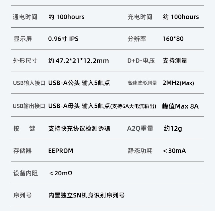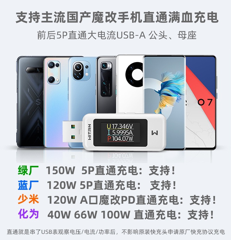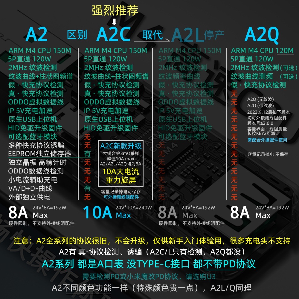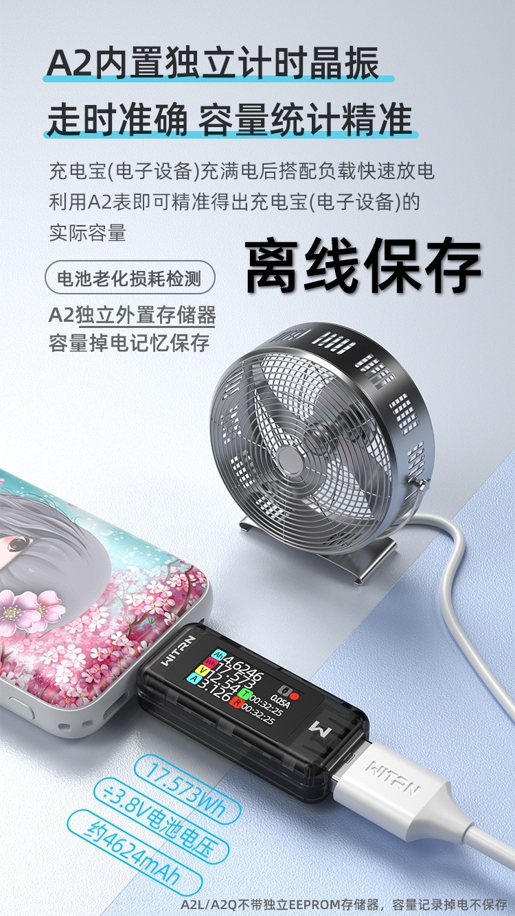 WITRN A2Q Weijian tester ammeter, tester ammeter tegangan USB 8A perubahan ajaib 120W detektor arus pengisian cepat ponsel