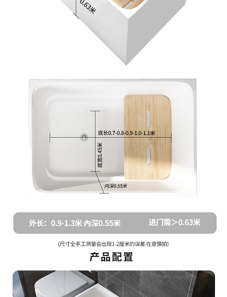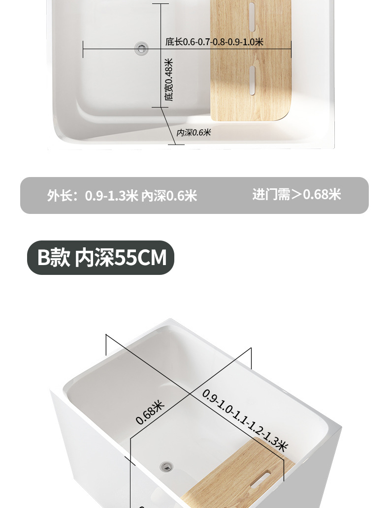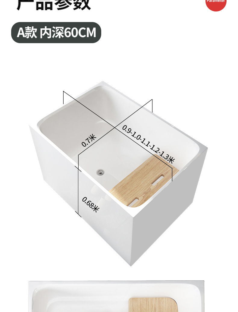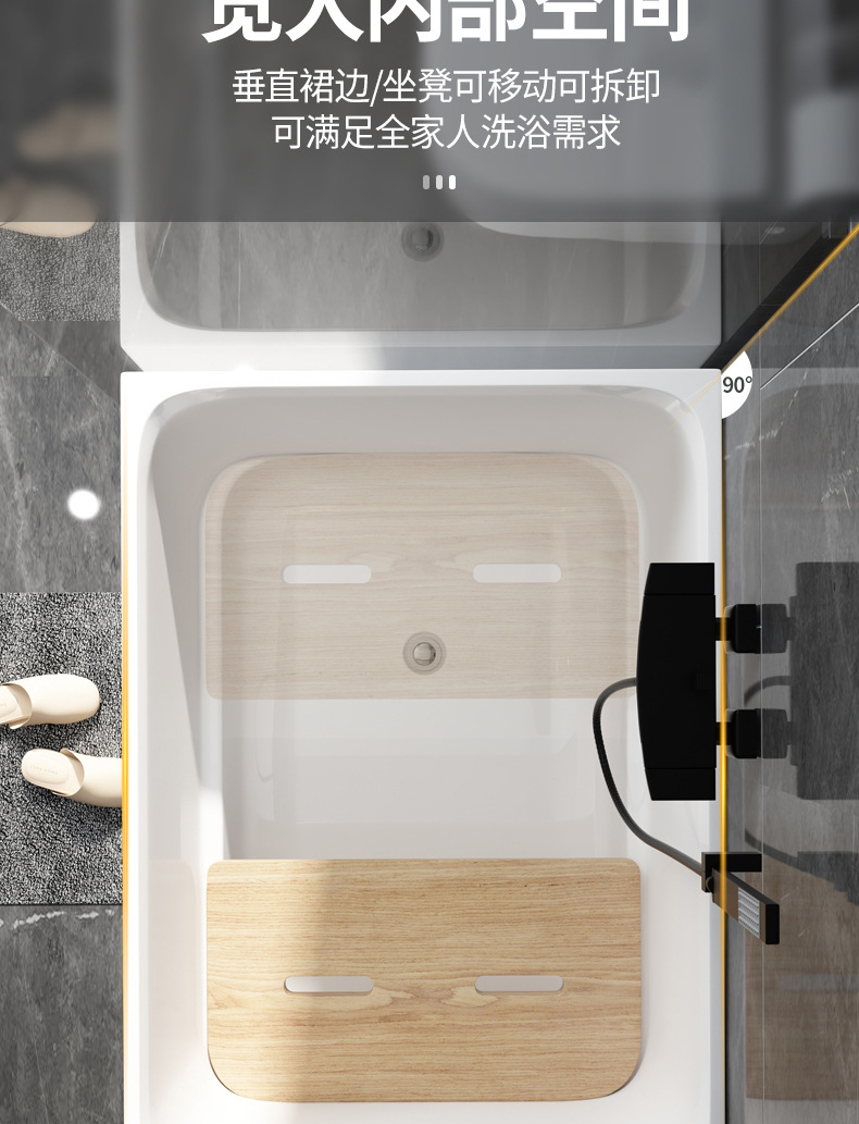 Bak mandi apartemen kecil gaya Jepang, bak mandi pelat kursi dapat dilepas kedalaman dalam 60/55cm jaring merah dalam gelembung