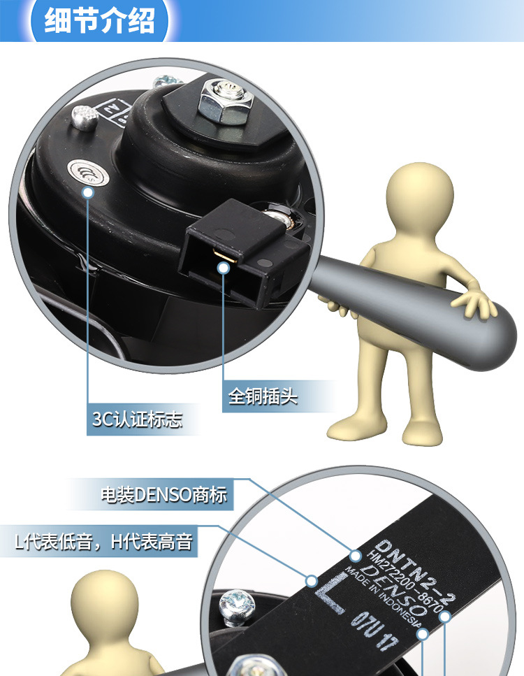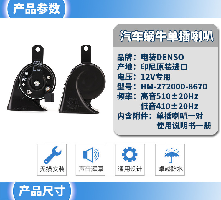 电装DENSO汽车鸣笛喇叭双音蜗牛12v超响防水通用改装丰田专用正品