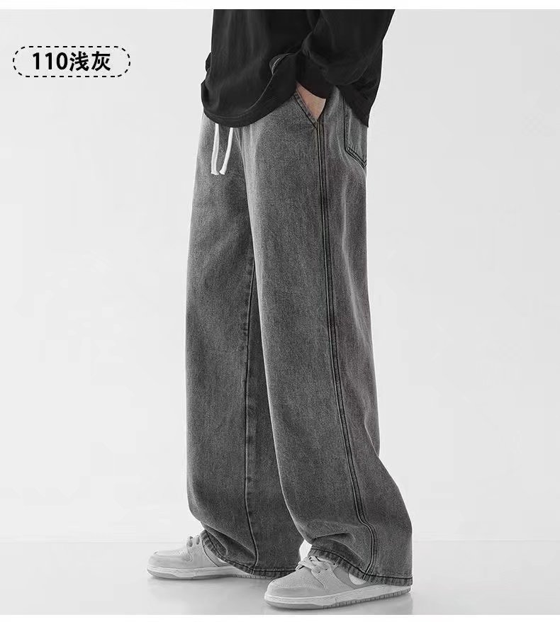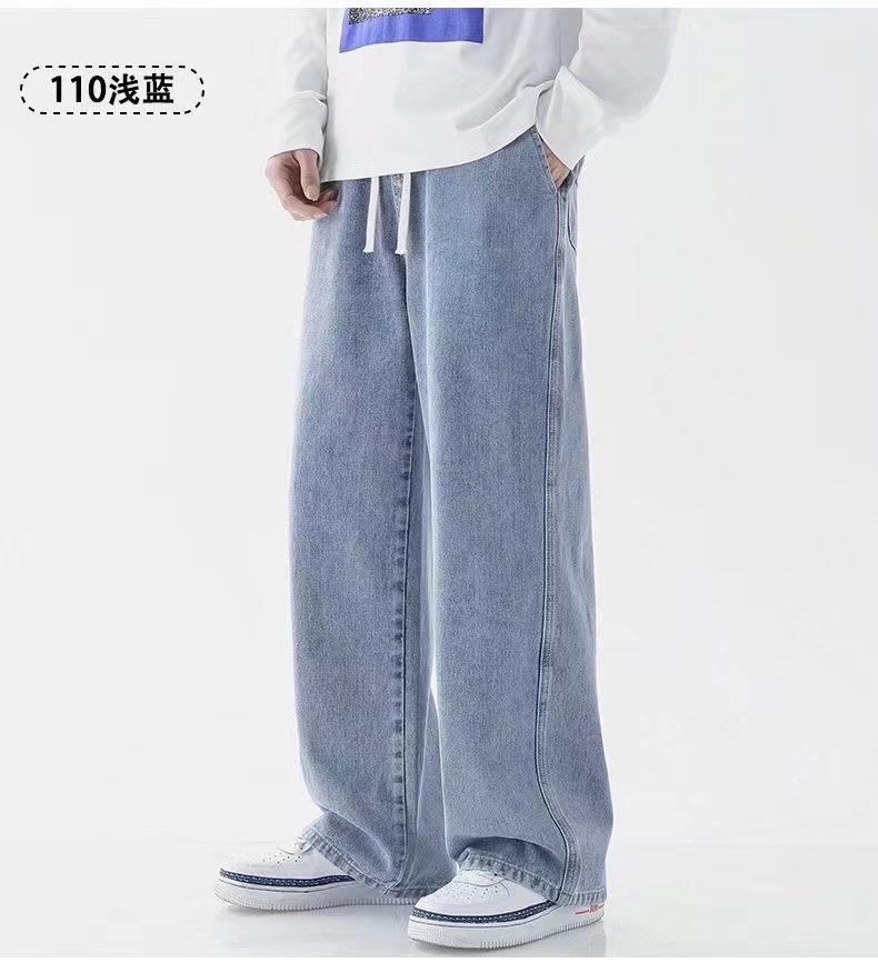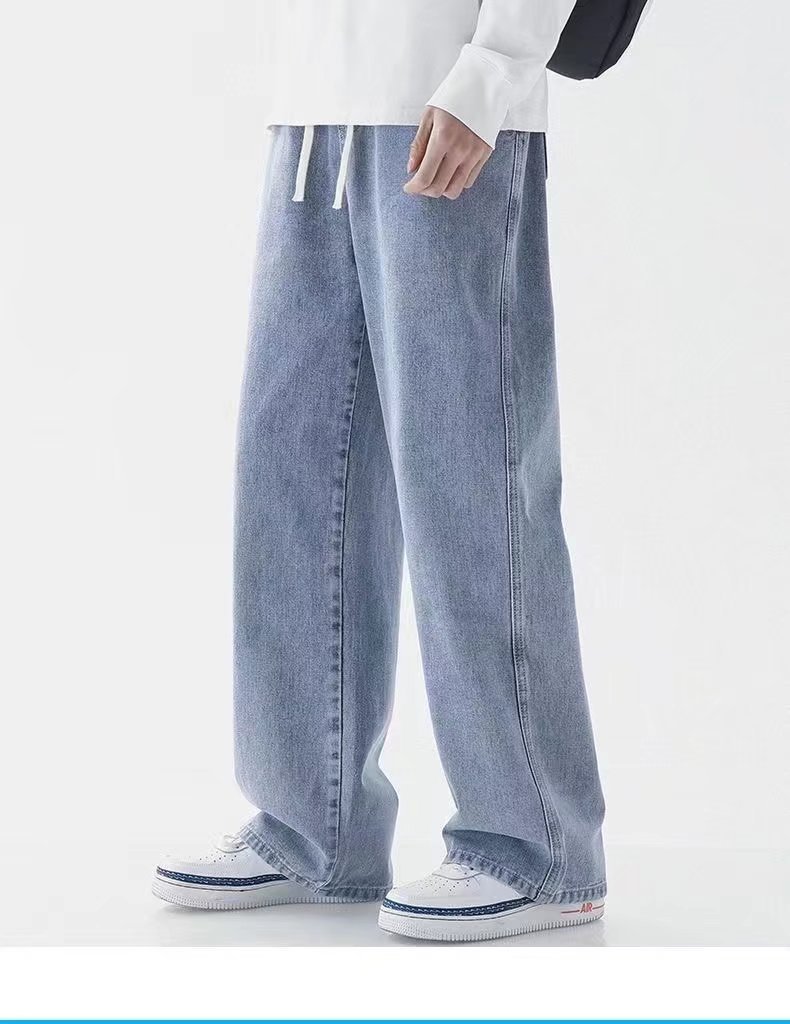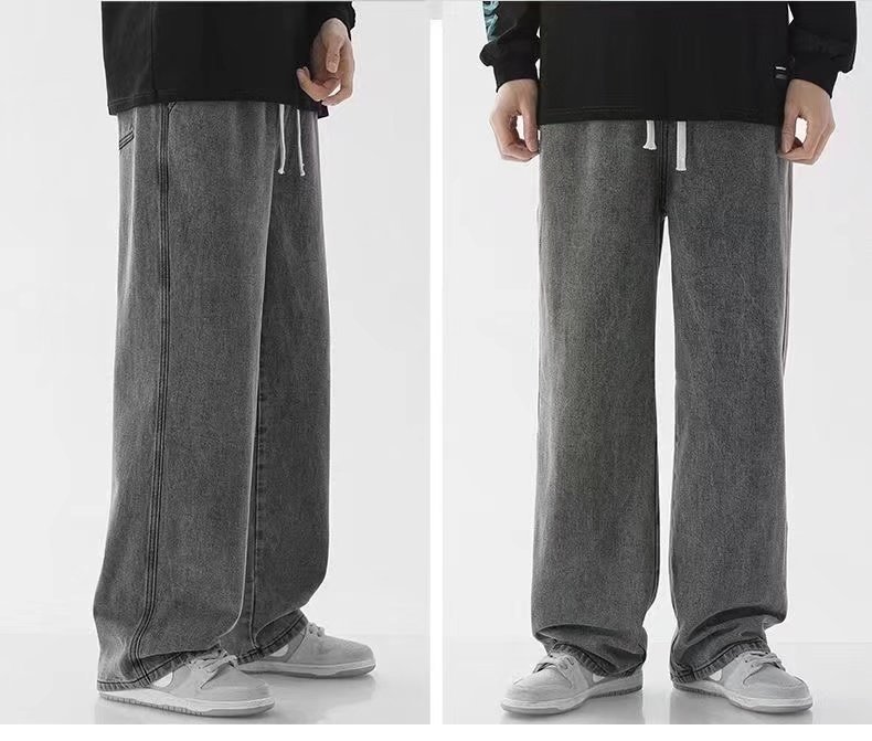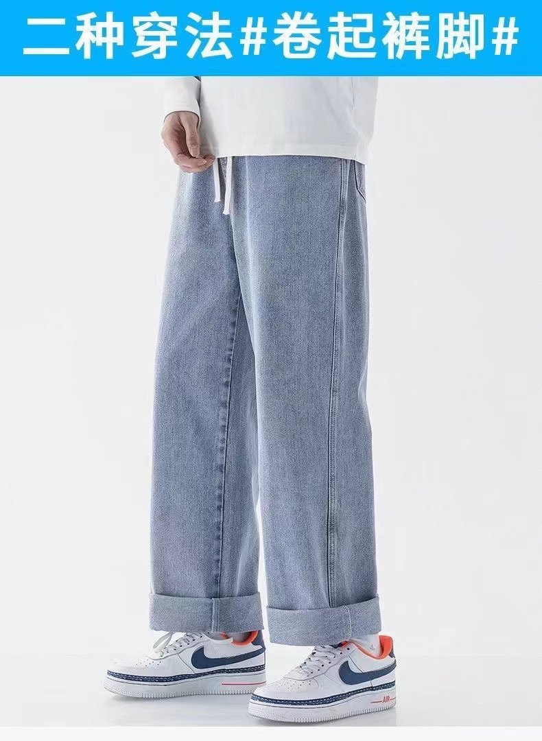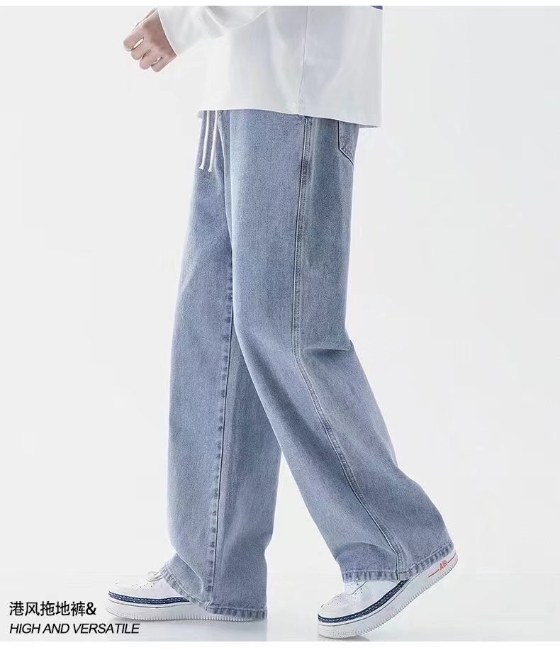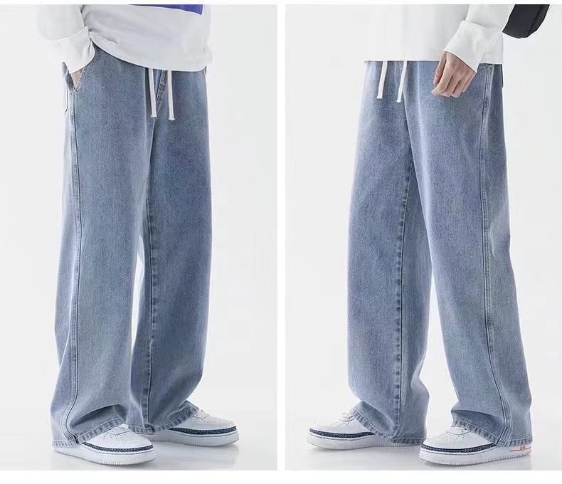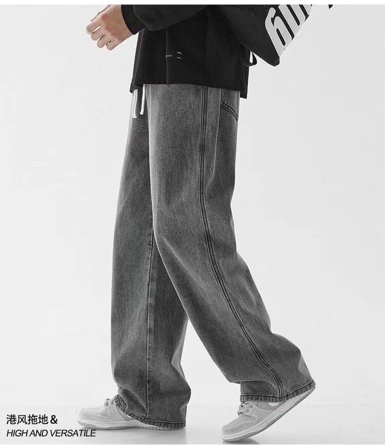 Celana Jeans Celana Lurus Longgar Ukuran Besar Model Baru Musim Semi Musim Gugur Pria Celana Panjang Kaki Lebar Kasual Trendi Ins Gaya Hongkong Remaja