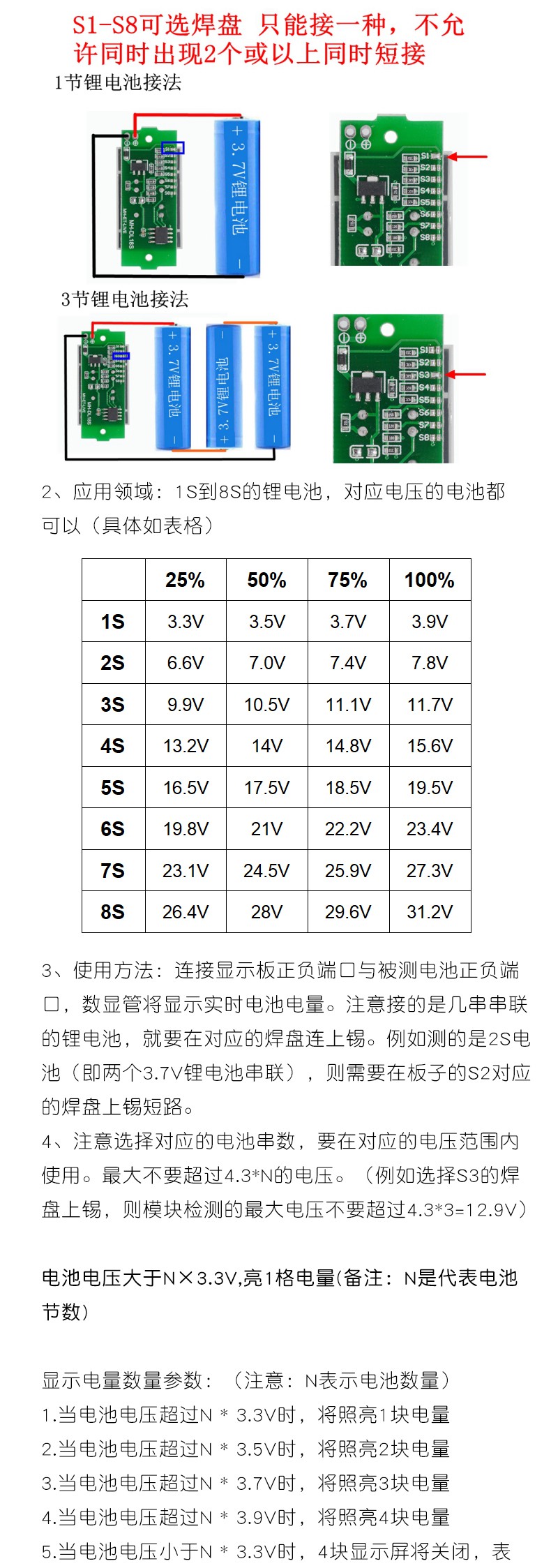 1/2/3/4/6/7/8S Baterai Lithium Meter Monitor Modul Tiga Tali Lampu Indikator Baterai Lithium LED