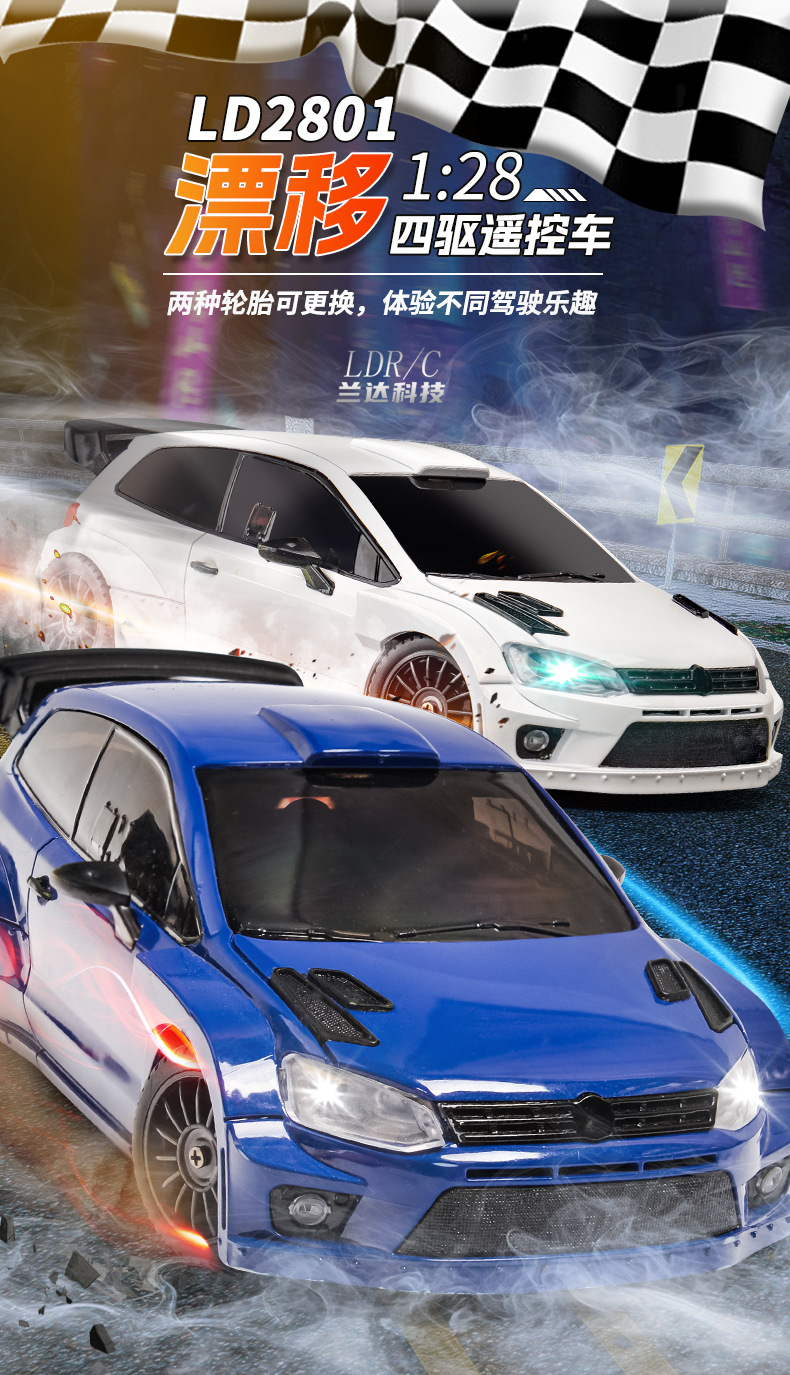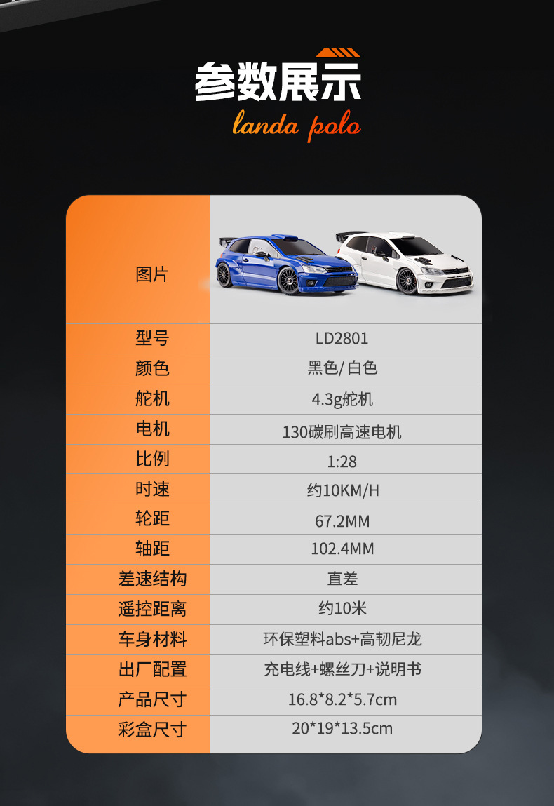 Teknologi Landa LD2801 Mobil Remote Control Drift Penggerak Empat Roda Skala Penuh POLO R Mengisi Daya Mainan Anak-anak Balap Kecepatan Tinggi