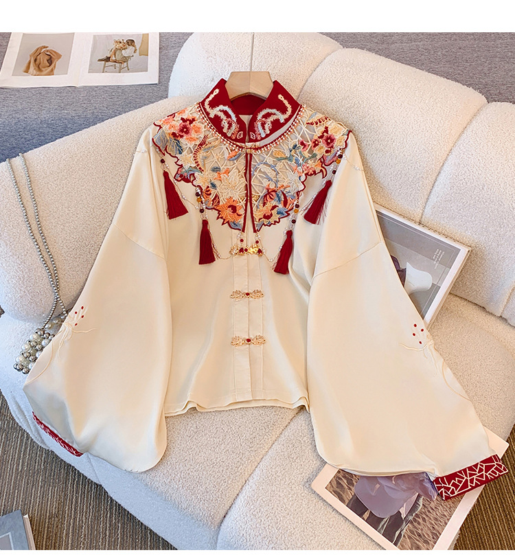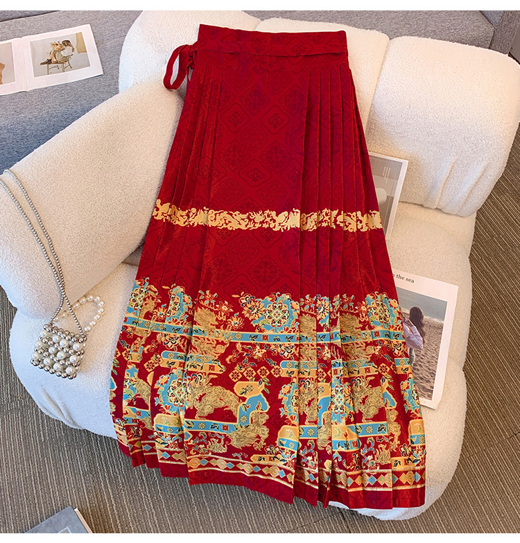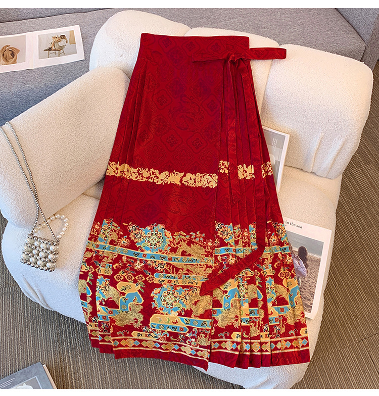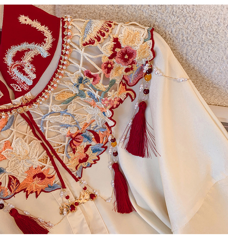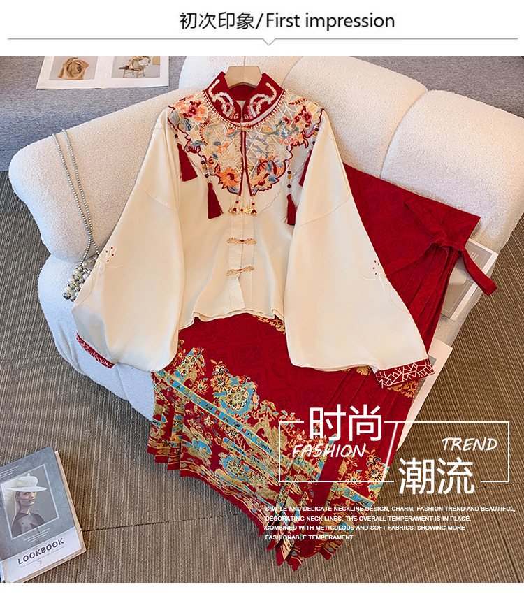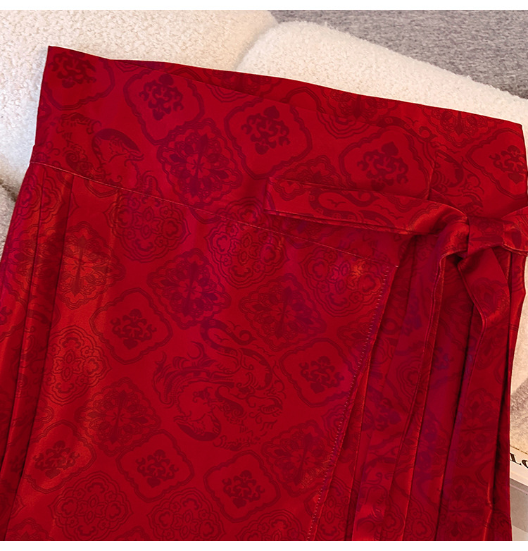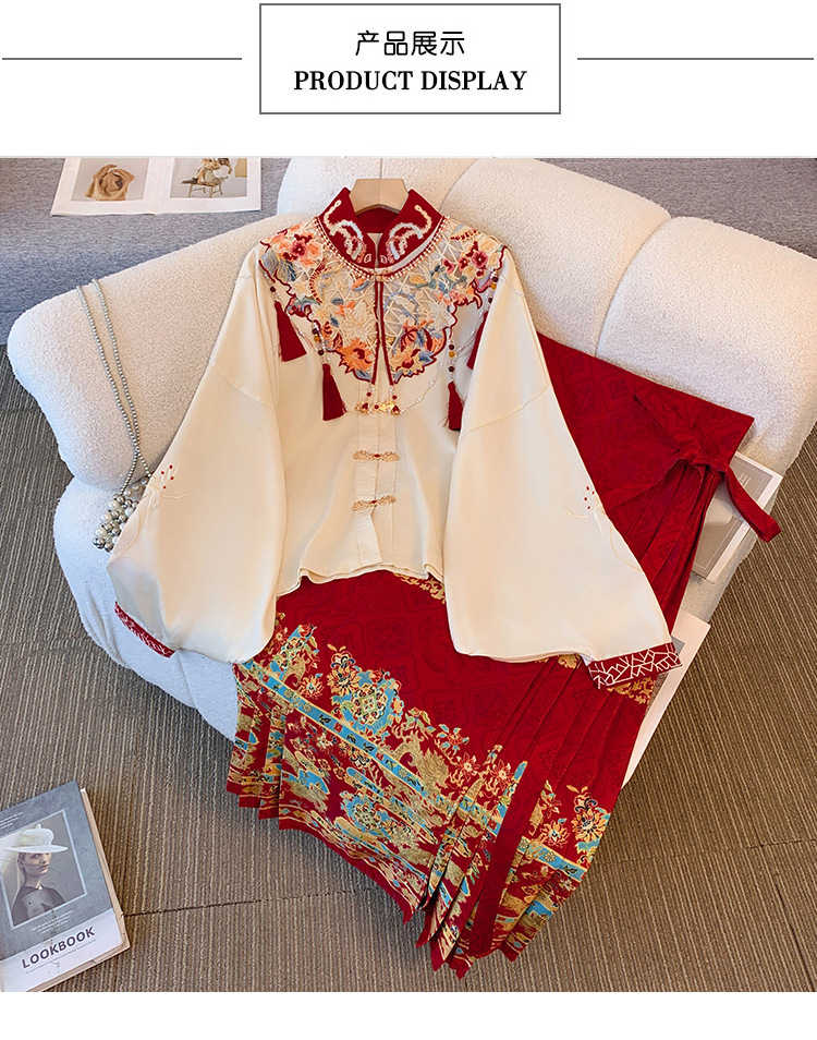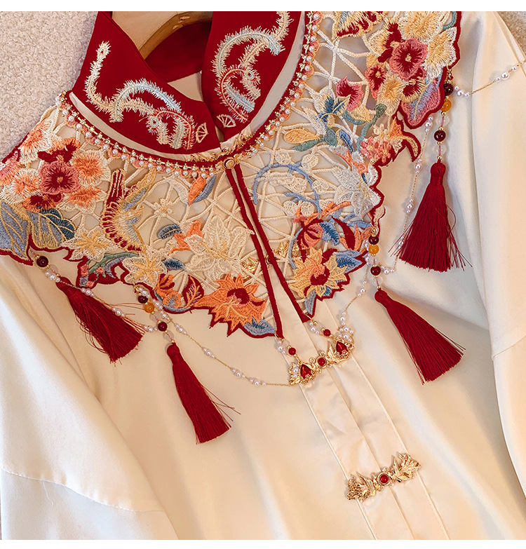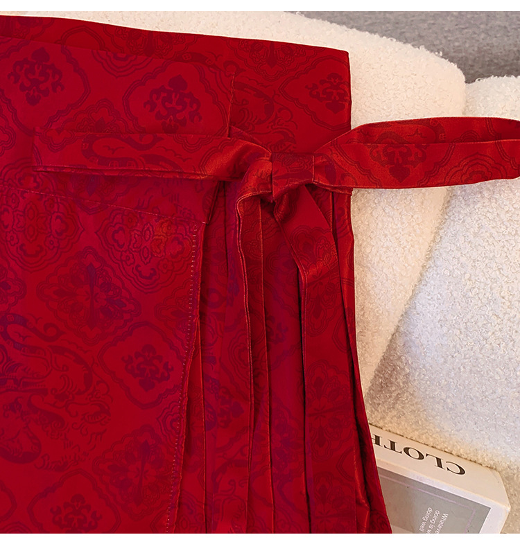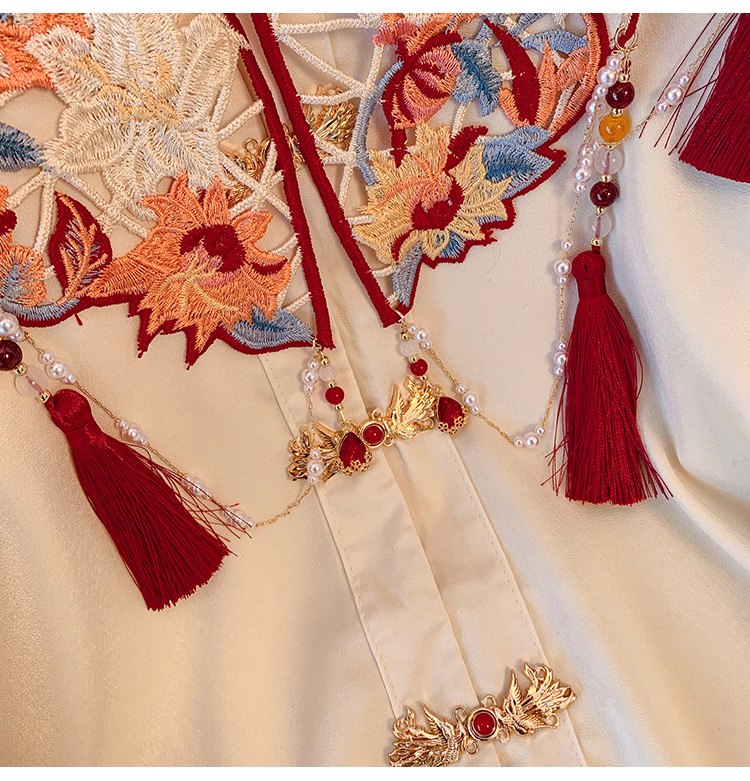 Ukuran Plus Juli Xi Han pakaian bordir awan bahu merah tenun emas gaun rompi roti panggang pakaian pertunangan gaya Cina baru