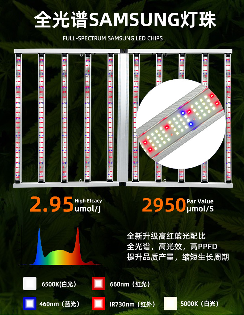 跨境欧洲北美英国加拿大澳大利亚墨西哥泰国越南中东大功率折叠款植物灯旋钮调光lm281B植物补光灯批发定制工厂 10灯条 1米8x1米1 10bar IR燈Full Spectrum led grow light 100W 300W 400W 640W 720W 800W 1000W 1200W 1500W大棚种植室内工业农业商业种植防太阳光植物照明補光燈厂家开花结果生长育苗室内大棚,垂直农场,迷你花园,绿叶蔬菜植物补光灯