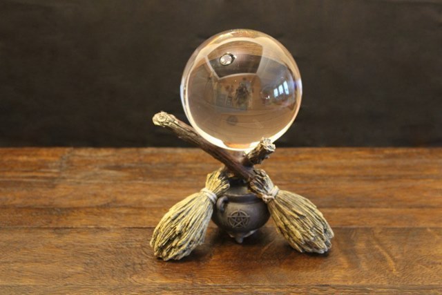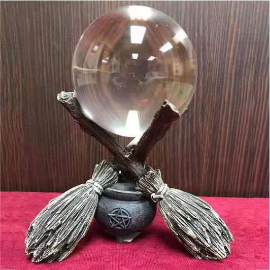 Besom dekorasi bola kristal dudukan tampilan sapu resin Dekorasi desktop tarot berdiri bola kristal pemegang bola dasar