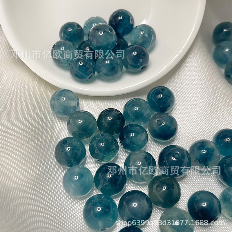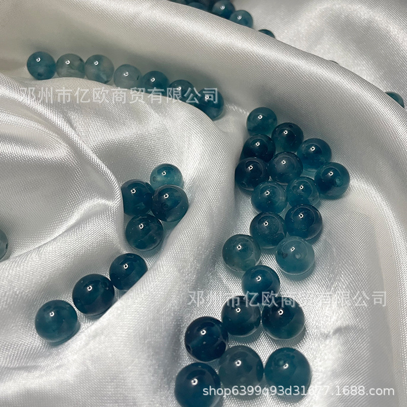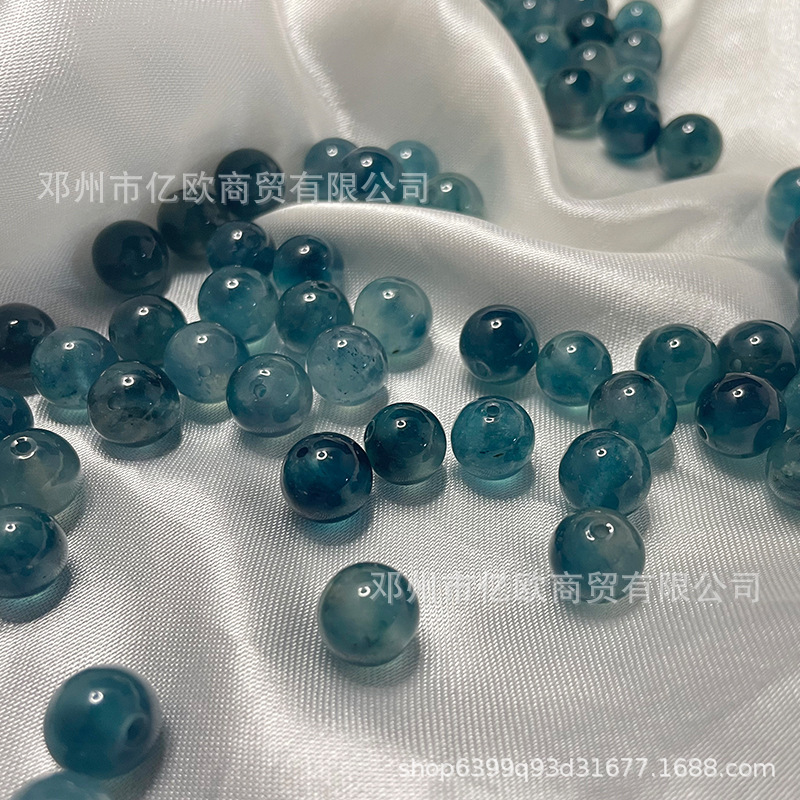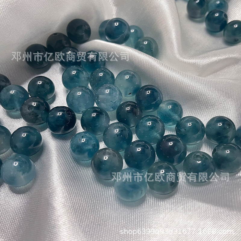 Biji es, manik-manik cerah dan beku, giok zamrud, manik-manik bunga mengambang biru, produk setengah selesai DIY buatan tangan, gelang banyak harta karun, Aksesori perhiasan