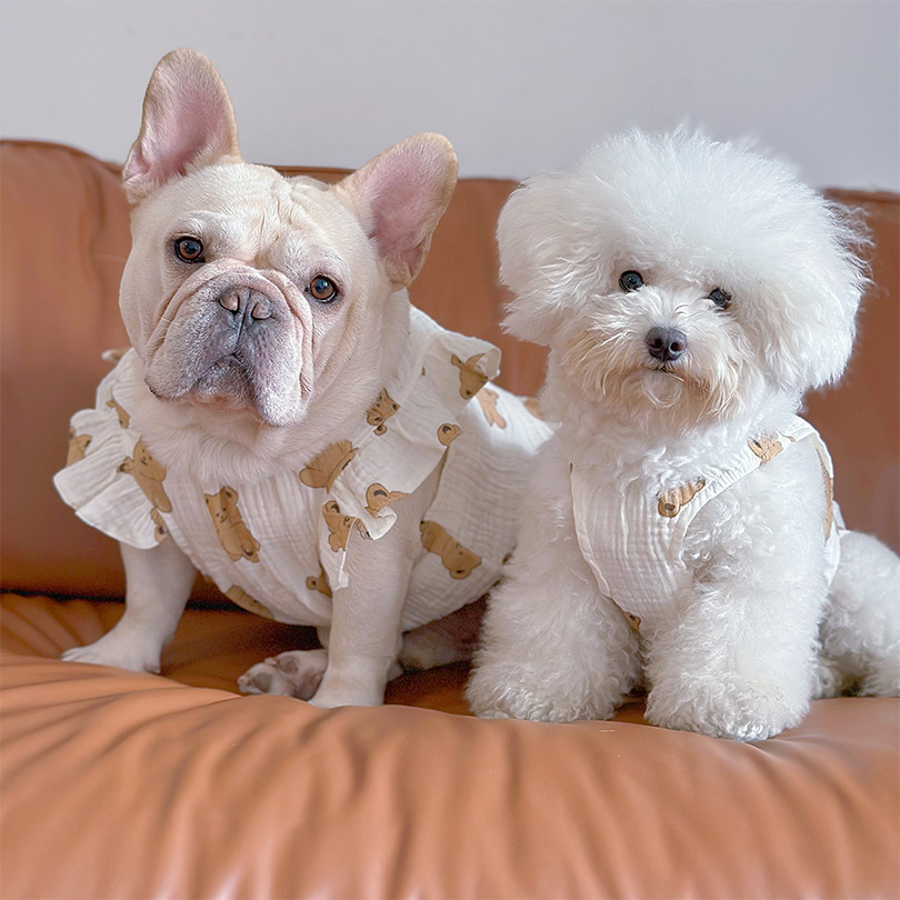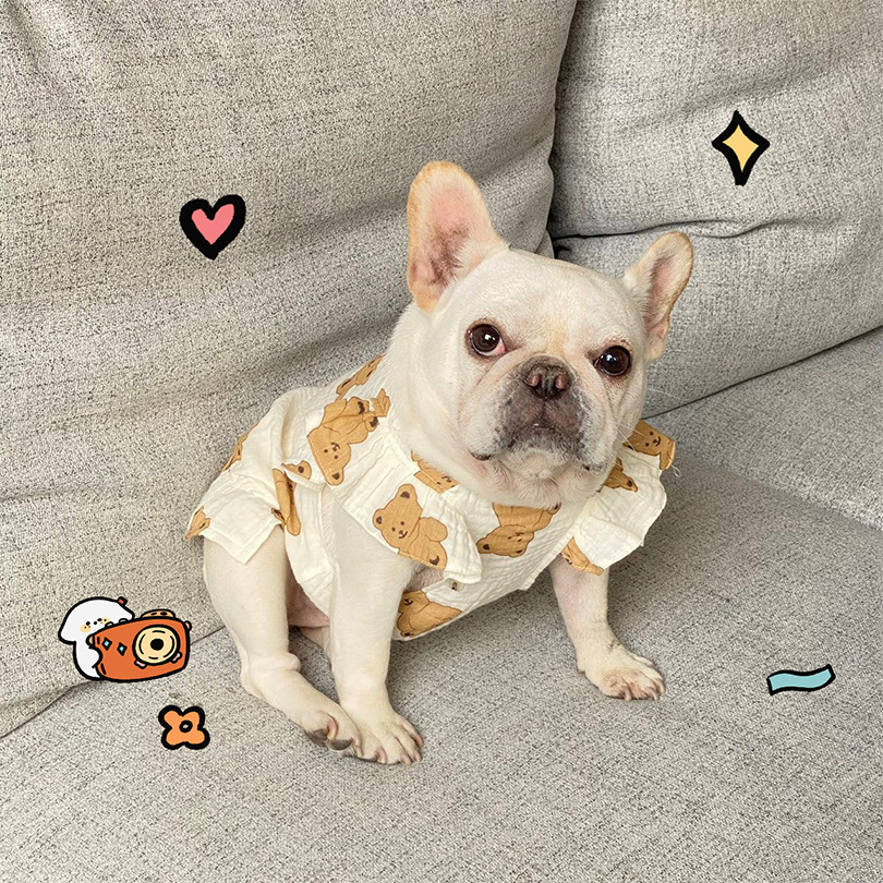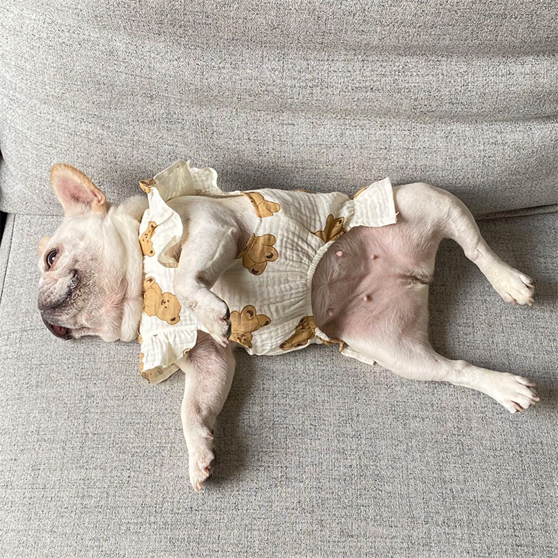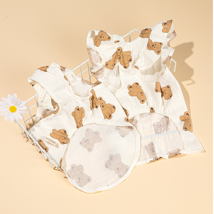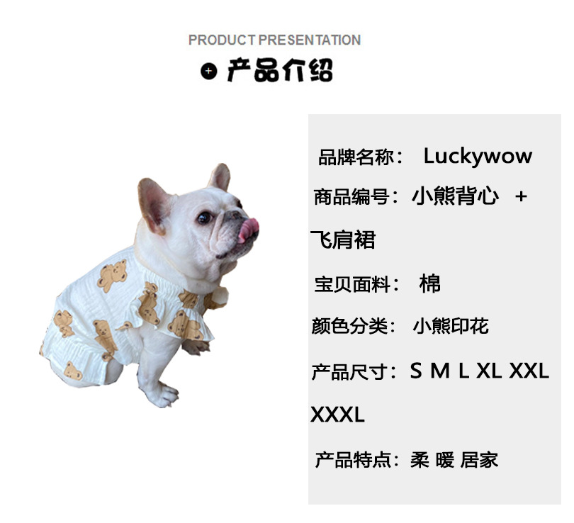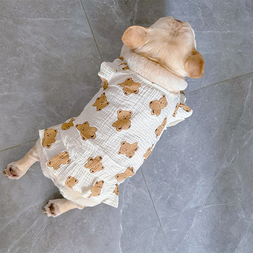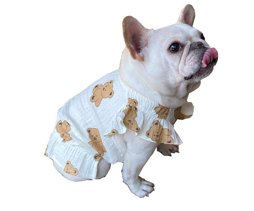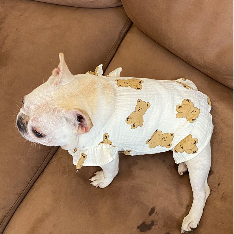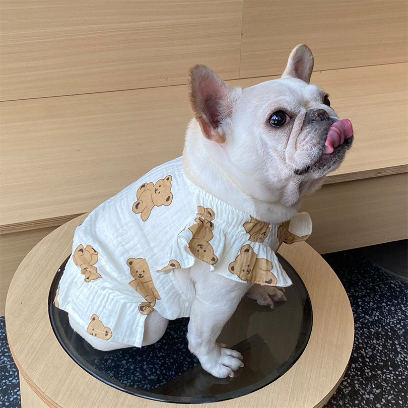 Pakaian hewan peliharaan katun Jepang dan Korea, pakaian kucing teddy bear fadou corgi piyama rumah rompi lengan Terbang rok bernapas