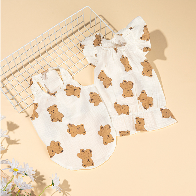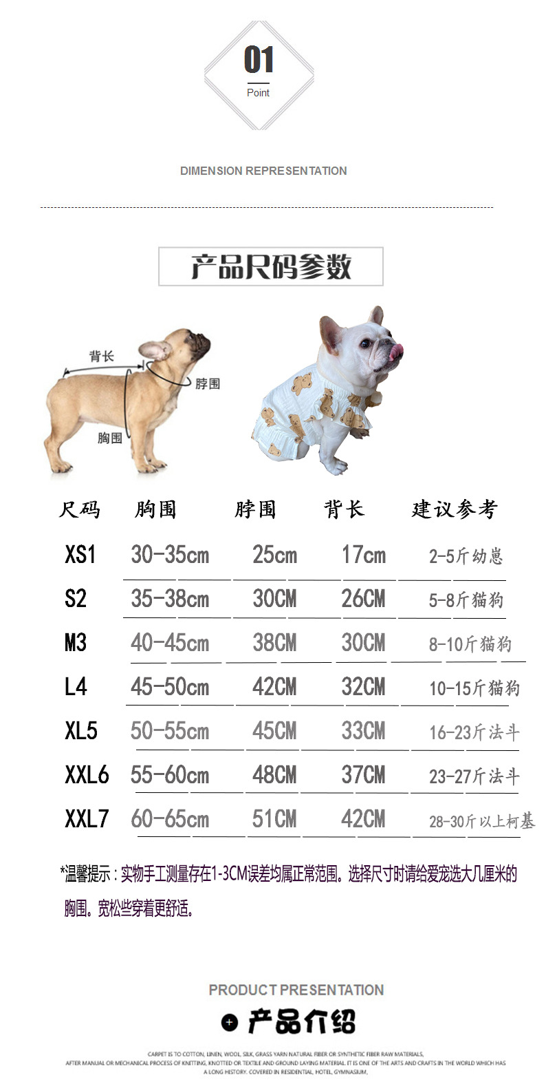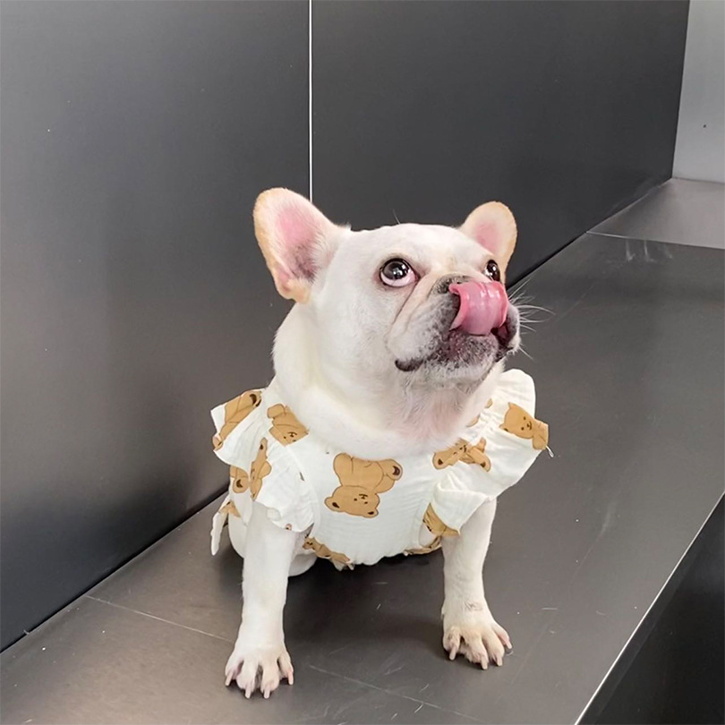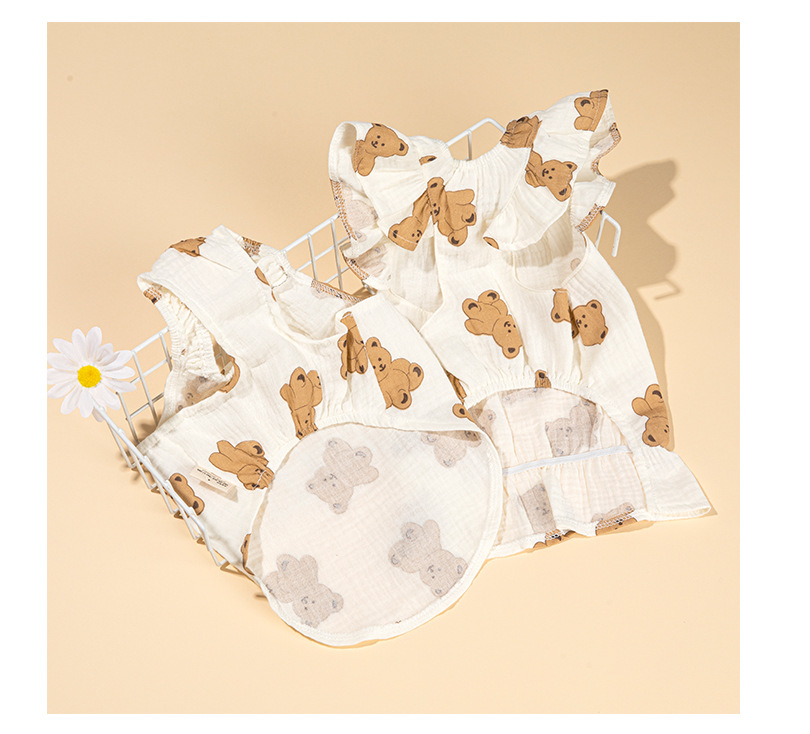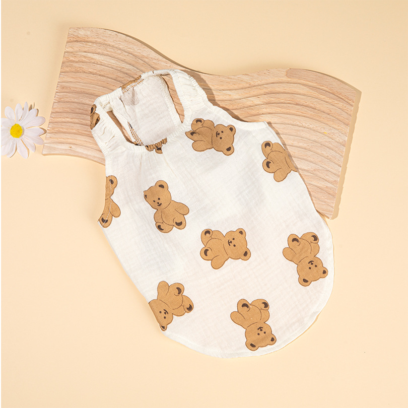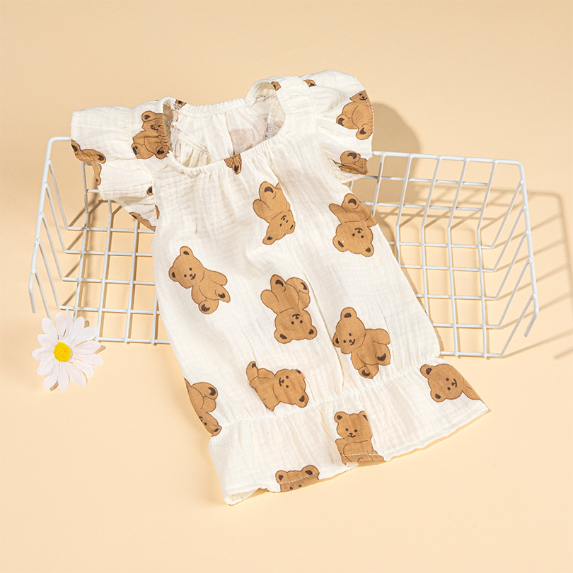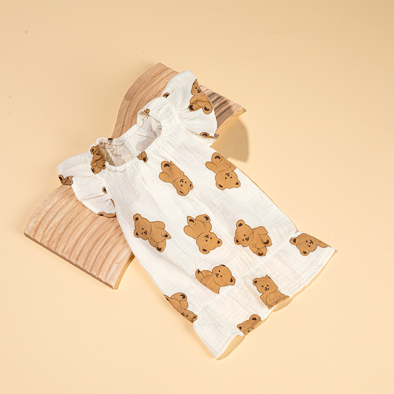 Pakaian hewan peliharaan katun Jepang dan Korea, pakaian kucing teddy bear fadou corgi piyama rumah rompi lengan Terbang rok bernapas