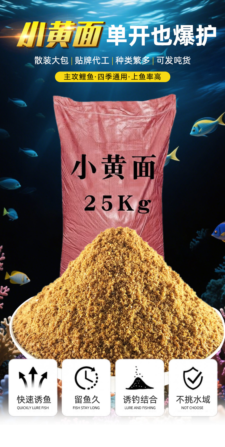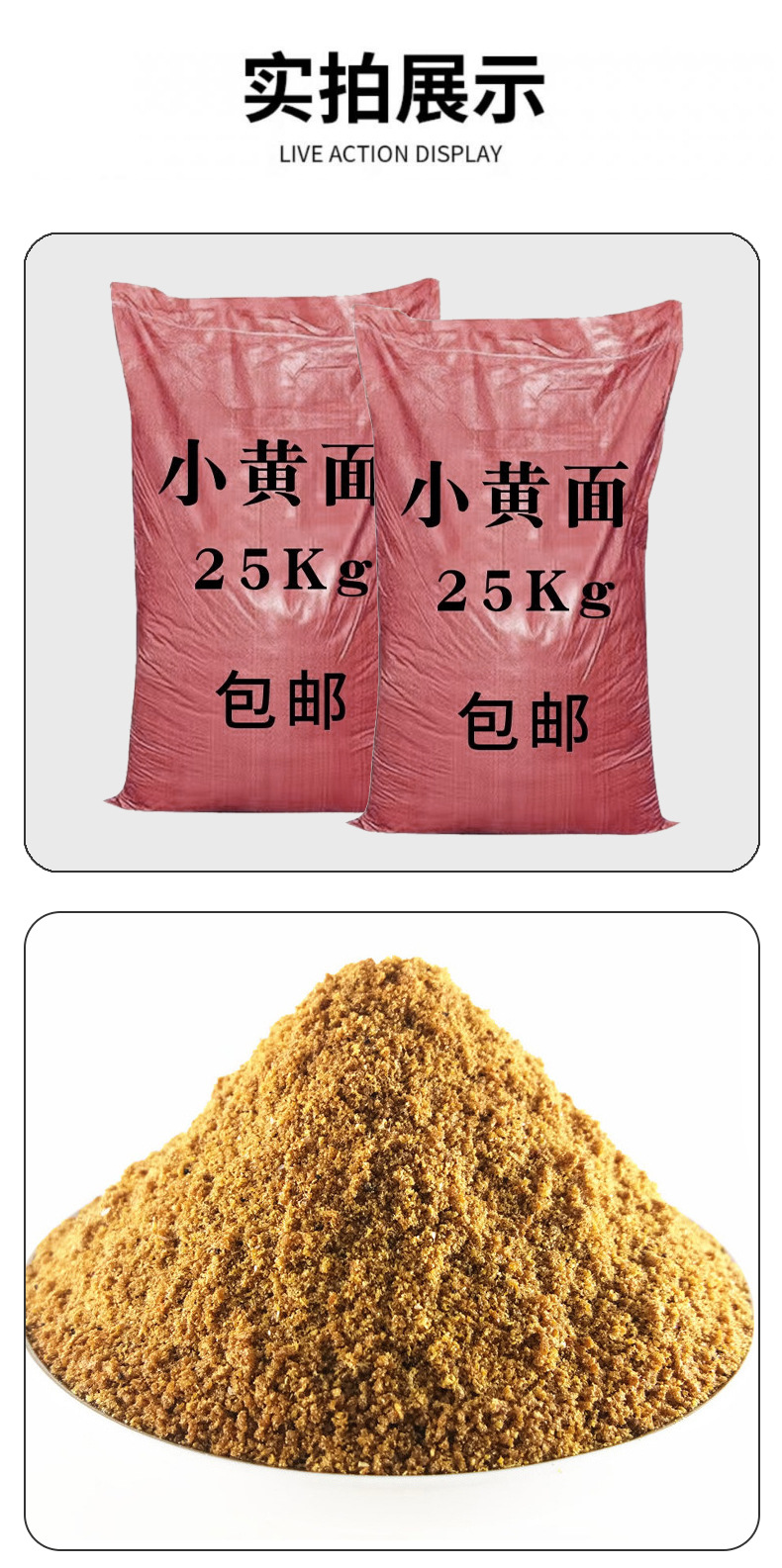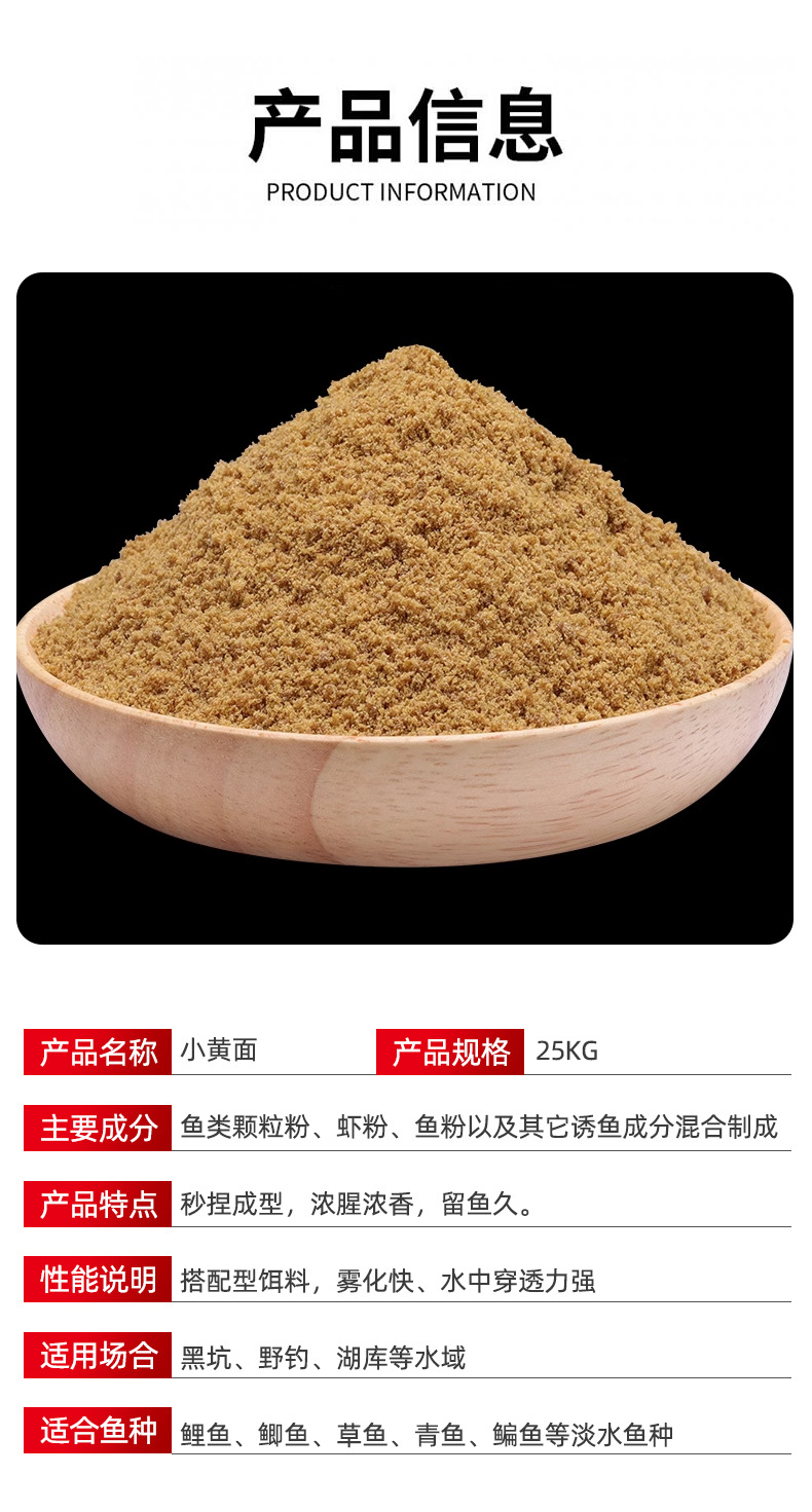 本公司主要生产轻麸、雪花粉、拉丝粉、拉球球、黄面、颗粒、鲫鱼食、鲤鱼食等各种基础饵料。如需吨货,请直接拨打电话或者联系客服。